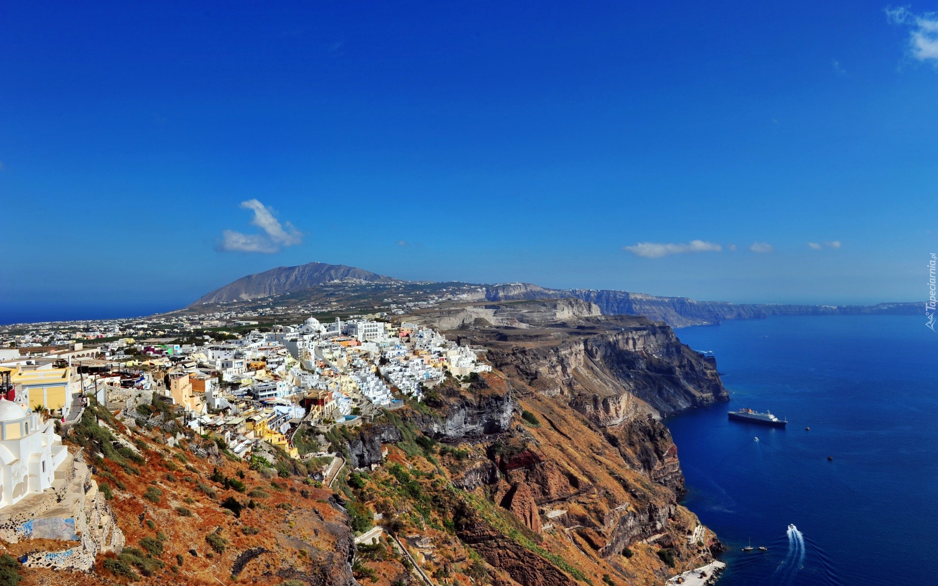 Edytor tapety: Morze, Wyspa, Santorini, Grecja