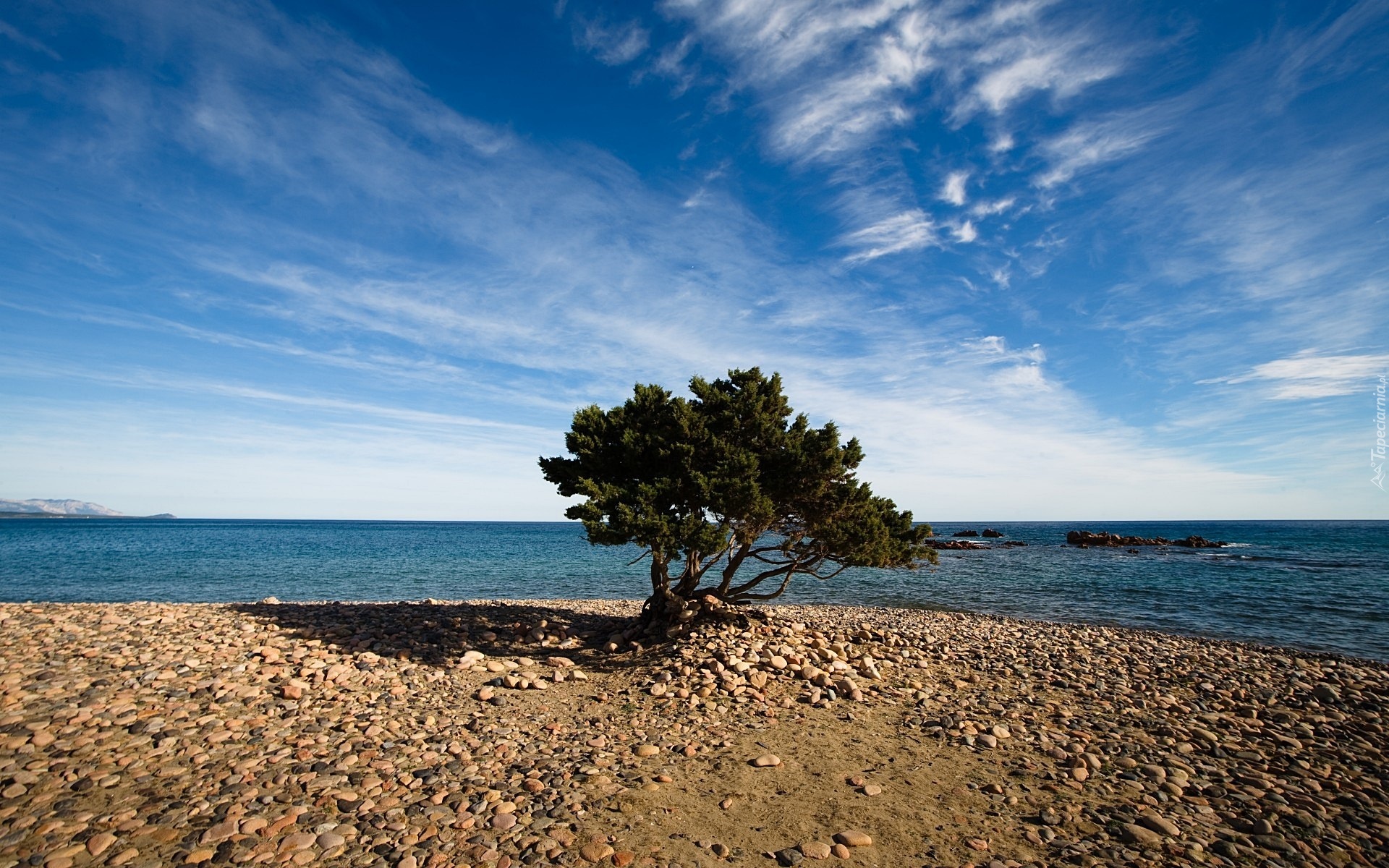 Edytor tapety: Morze, Kamienna, Plaża, Drzewo