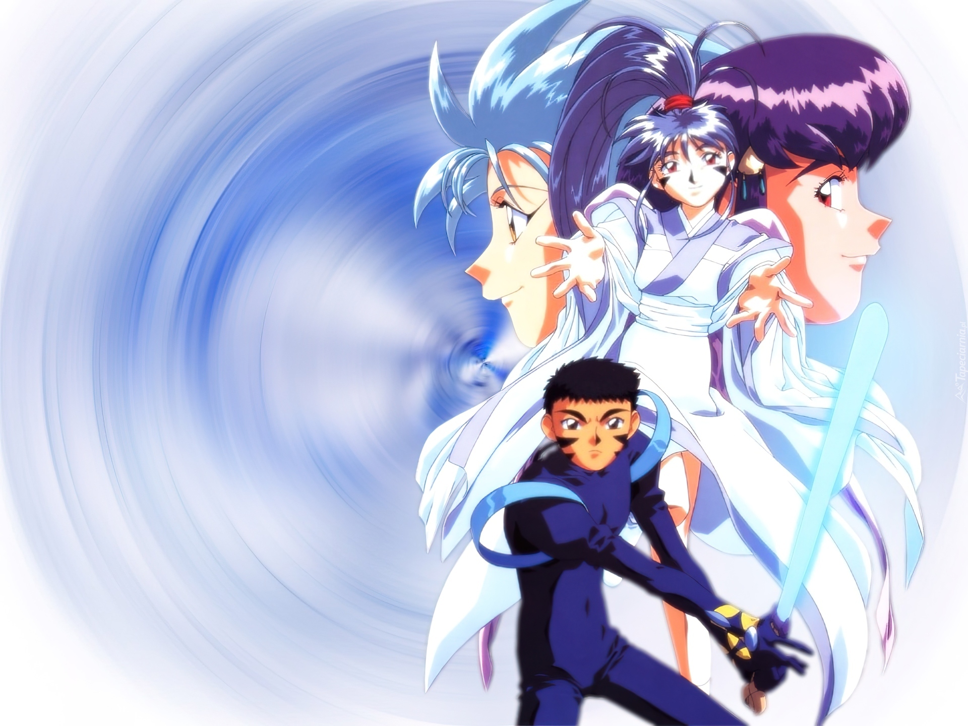 Edytor tapety: Tenchi Muyo, miecz, niebieski kombinezon
