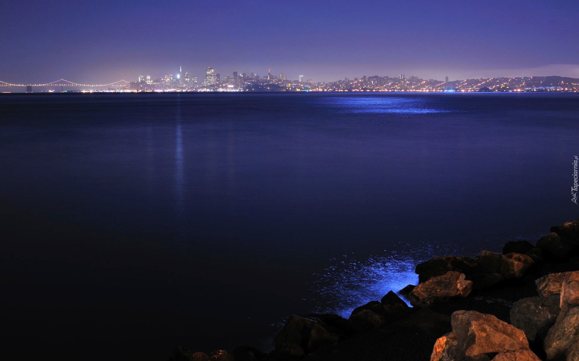Edytor tapety: Morze, Kamienie, Noc, San Francisco