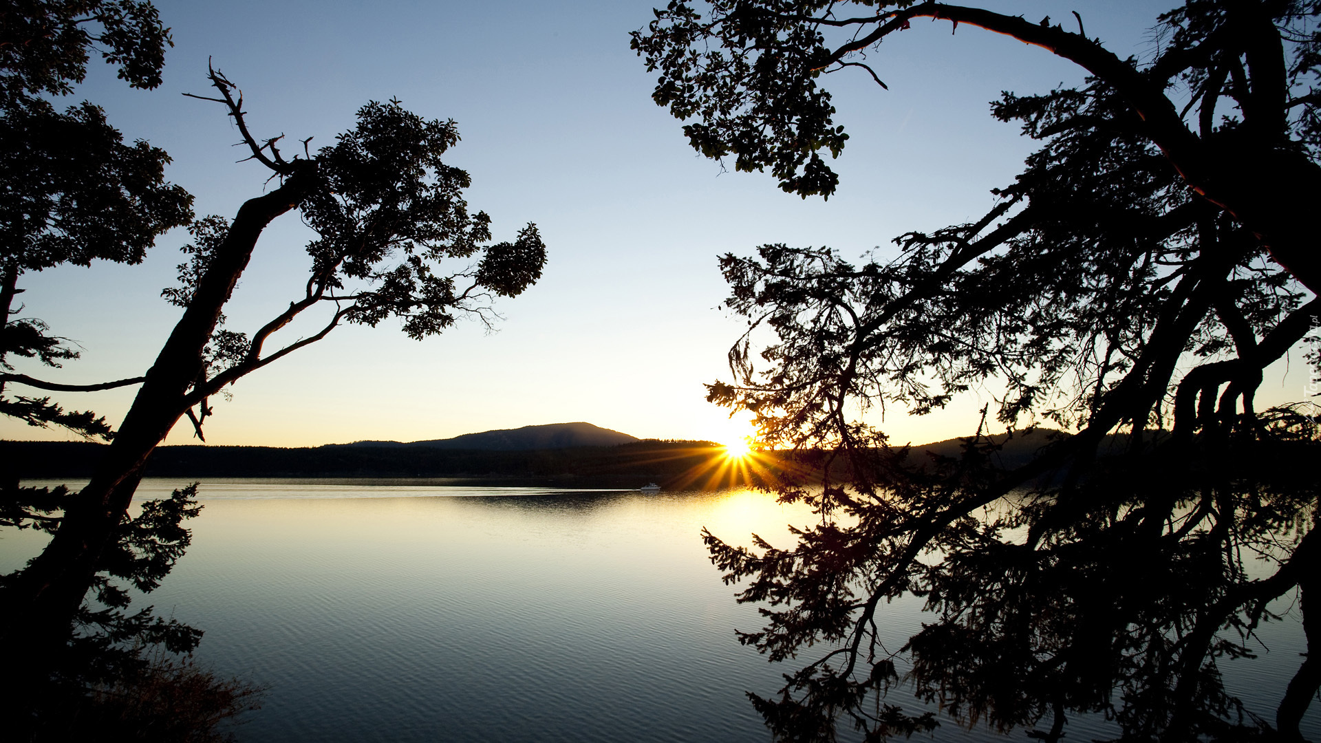 Edytor tapety: Drzewa, Jezioro, Wschód, Słońca