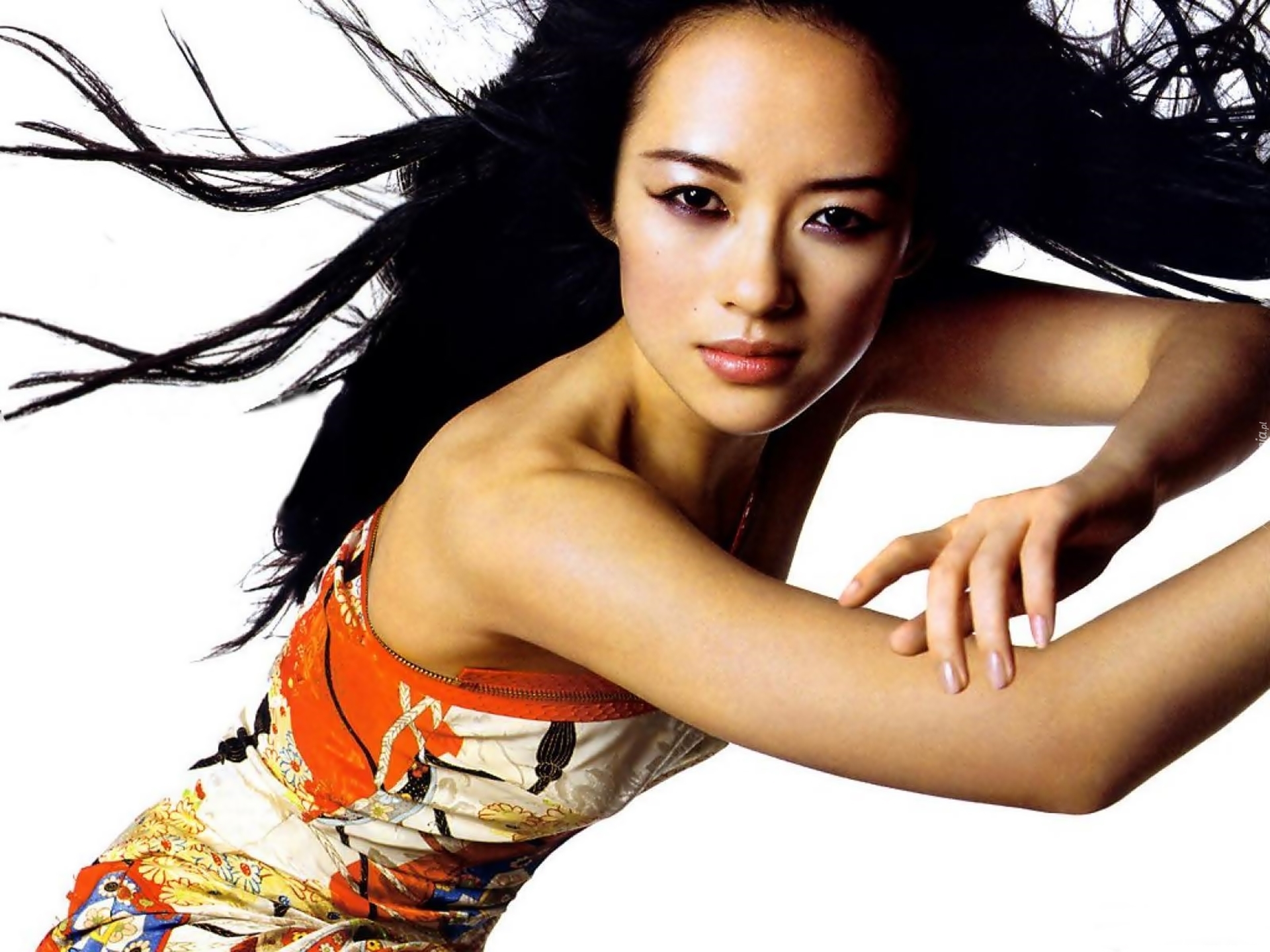 Edytor tapety: Ziyi Zhang, Brunetka, Kolorowa, Sukienka