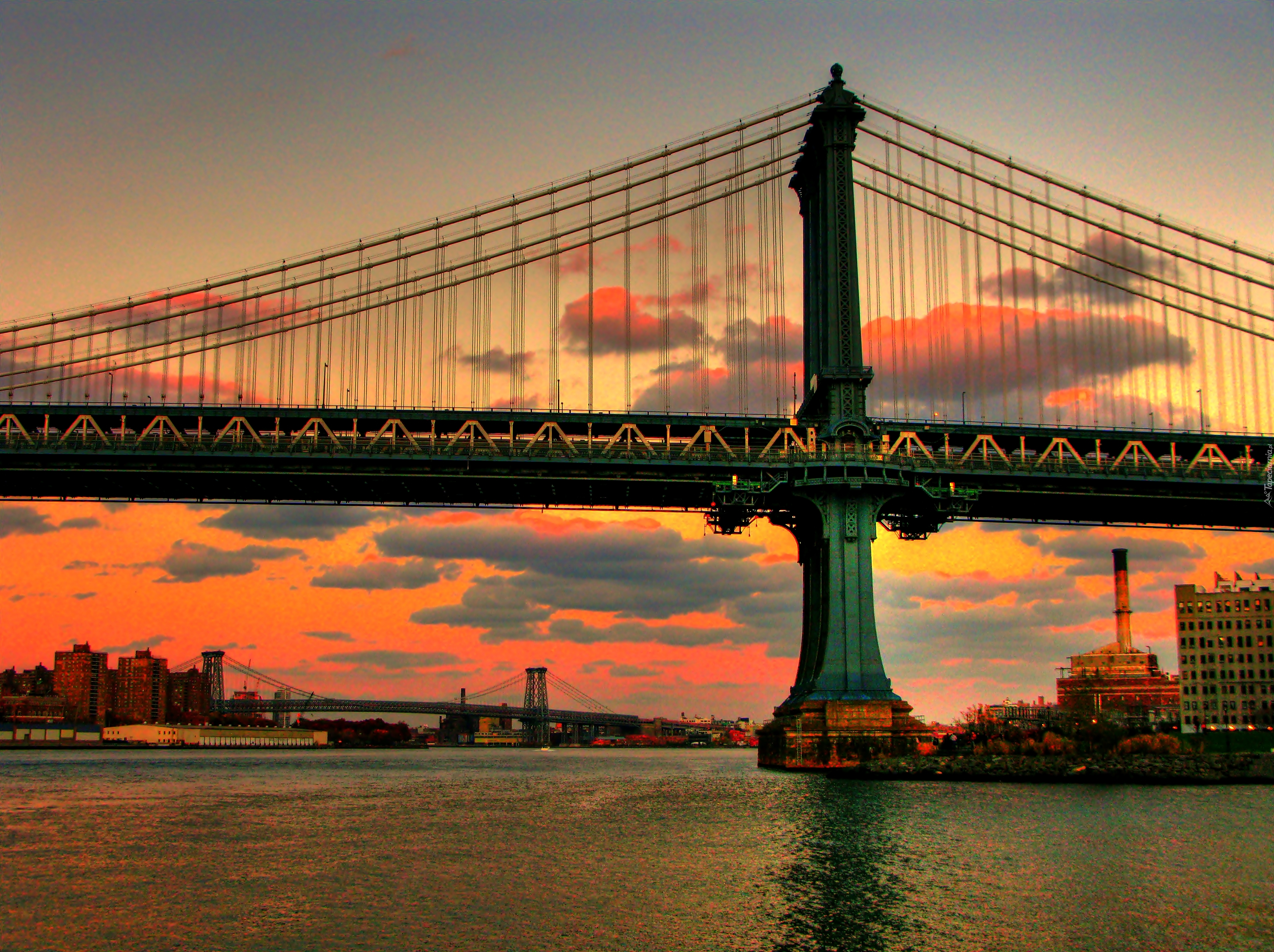 Edytor tapety: Rzeka, Most, Manhattan, Nowy York