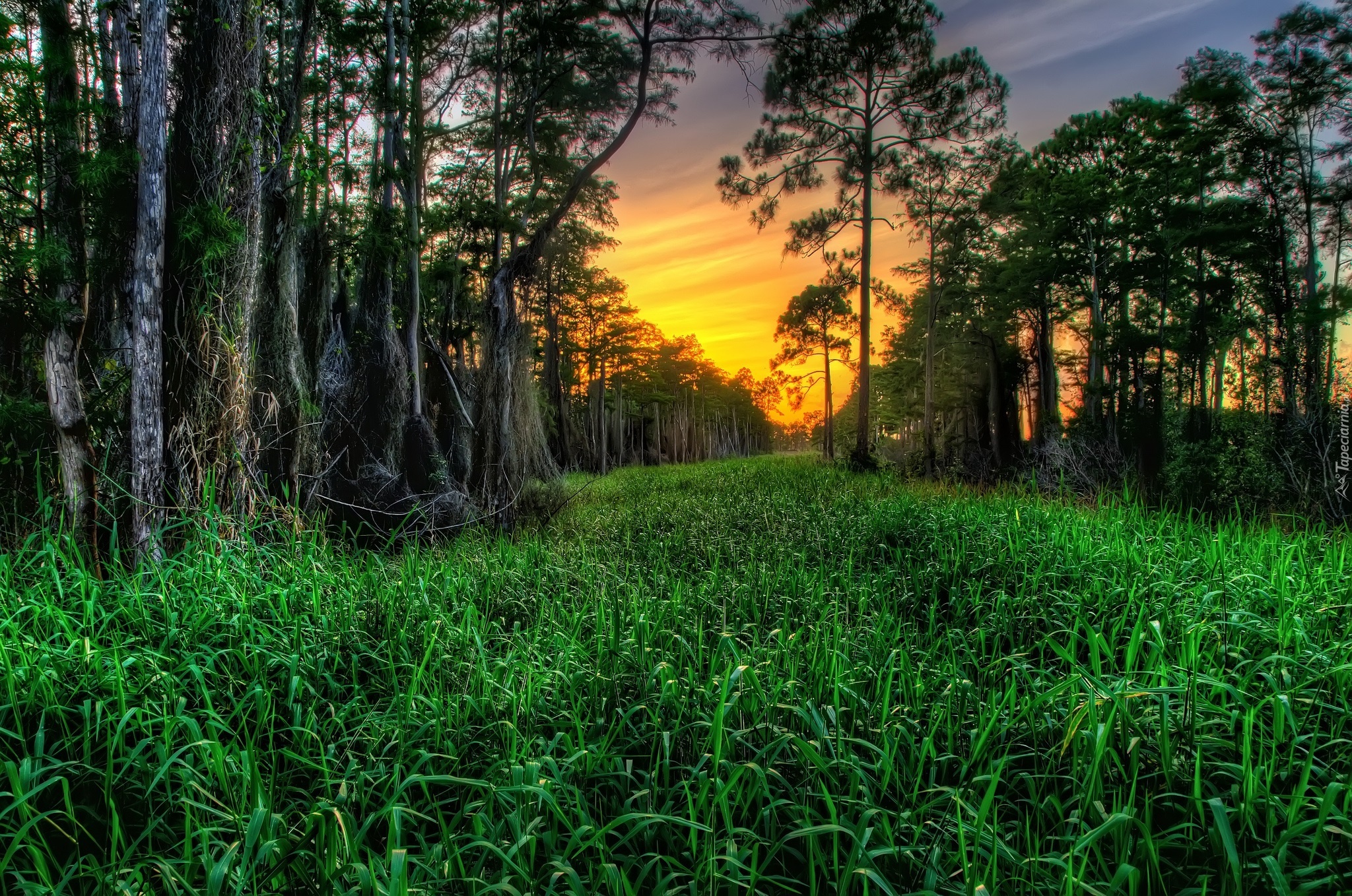 Edytor tapety: Stary, Las, Trawa, Zachód, Słońca