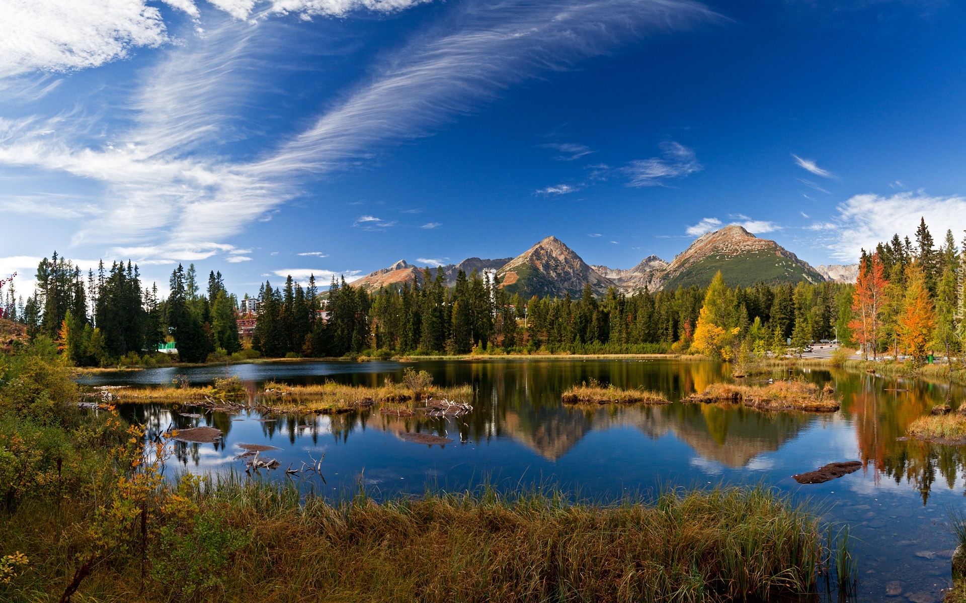 Edytor tapety: Rozlewisko, Lasy, Góry, Niebo