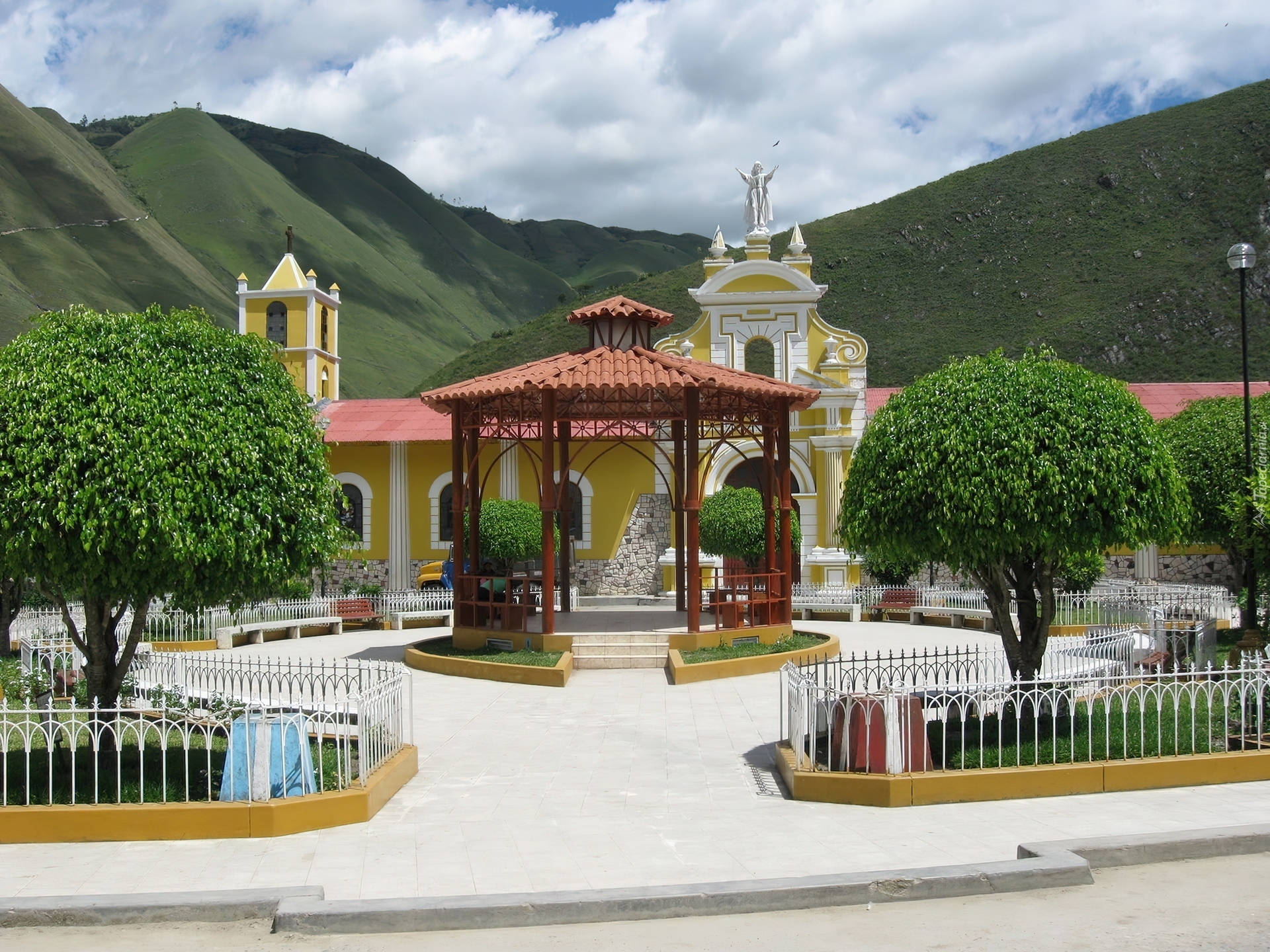 Edytor tapety: Kościół, Drzewa, Góry, Niebo, Chmurki