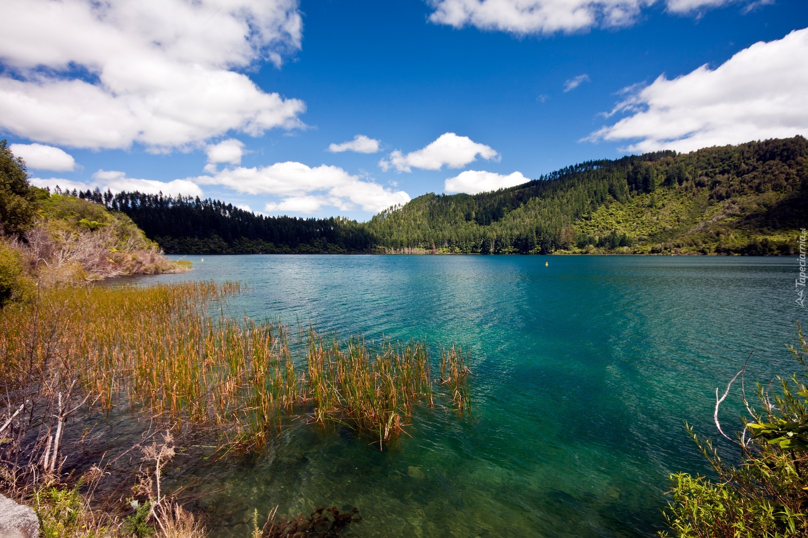 Edytor tapety: Jezioro, Lasy, Chmurki, Nowa, Zelandia