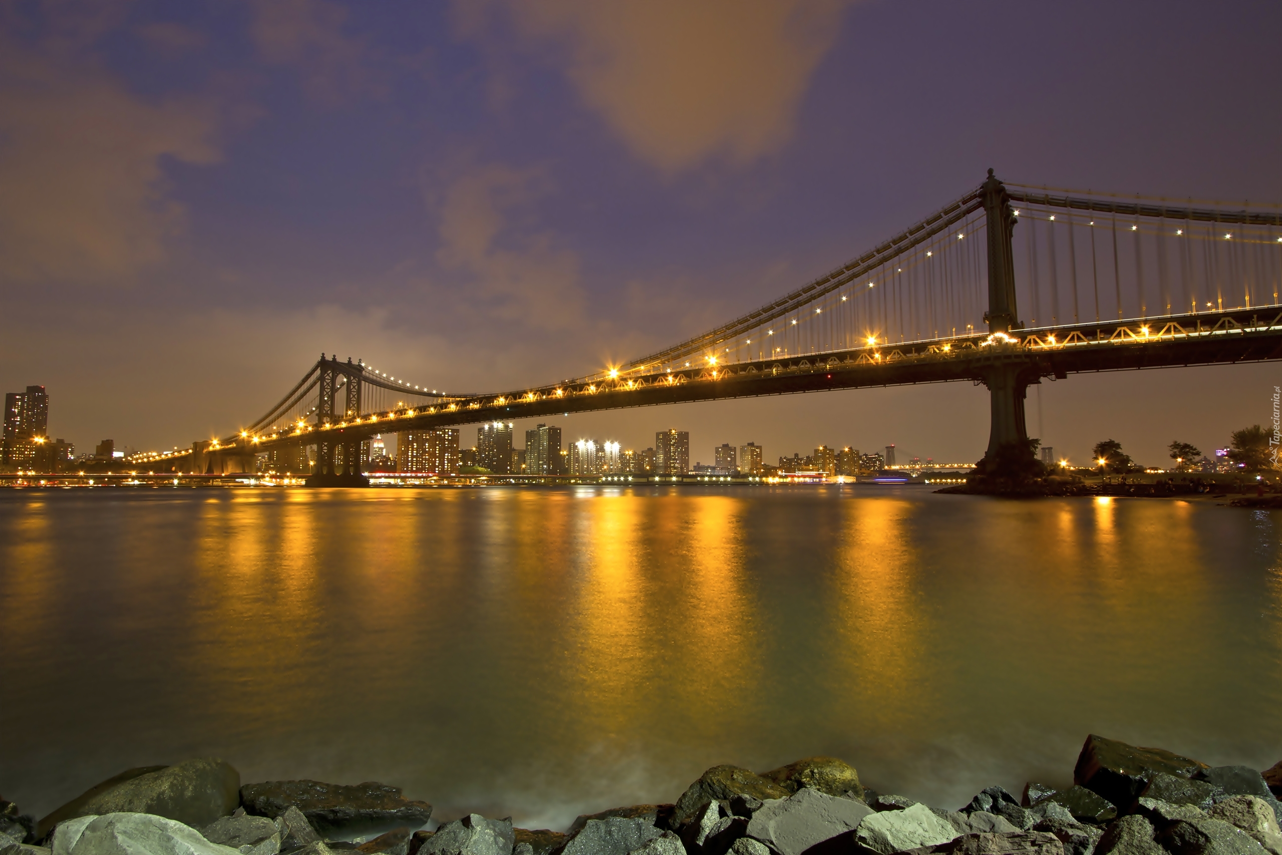 Edytor tapety: Most, Rzeka, Kamienie, Manhattan Bridge, Nowy York