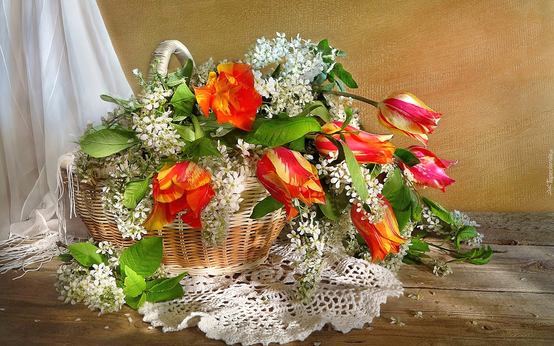 Edytor tapety: Bukiet, Tulipanów, Koszyk, Kompozycja