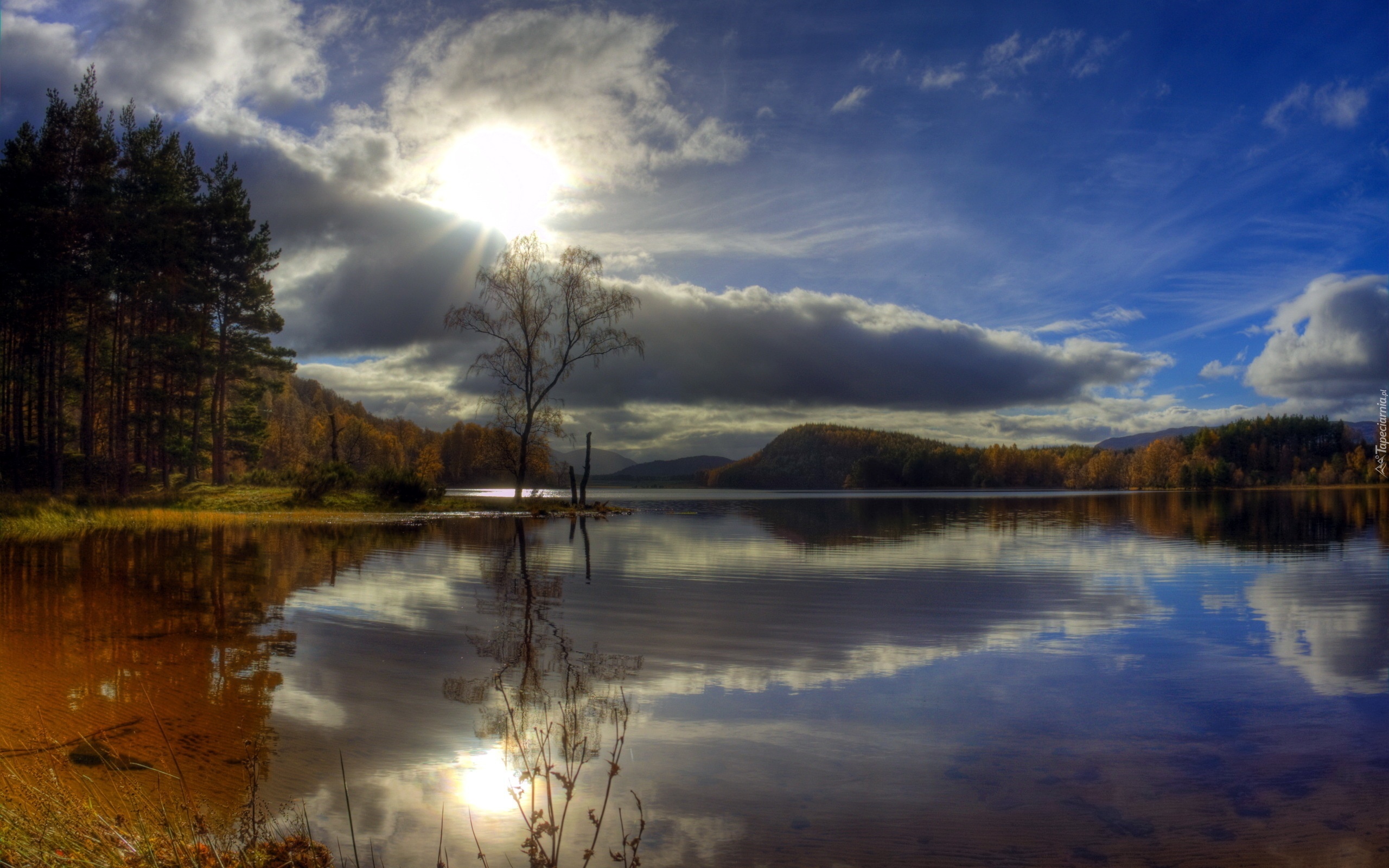 Edytor tapety: Rzeka, Lasy, Chmury, Zachód, Słońca