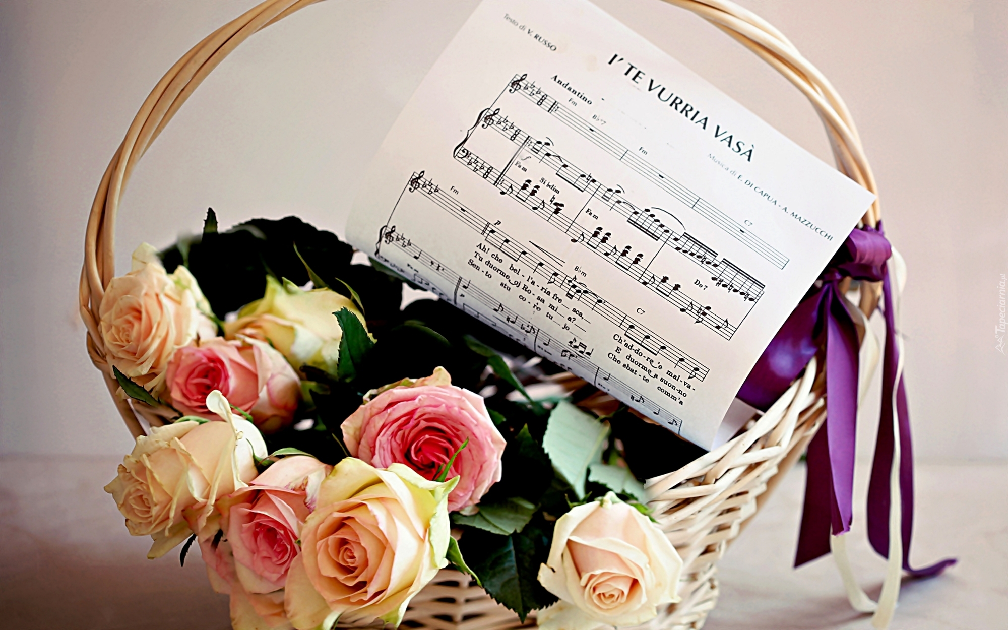 Edytor tapety: Róże, Kosz, Nuty