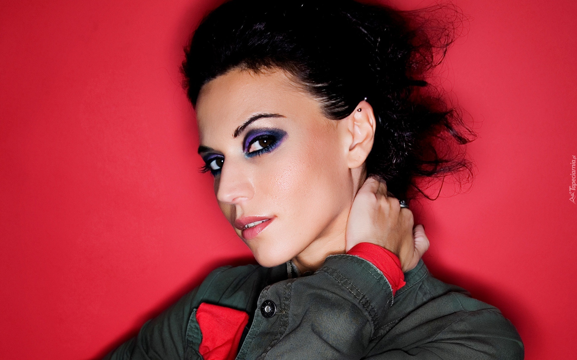 Edytor tapety: Kobieta, Makijaż, Czerwone, Tło