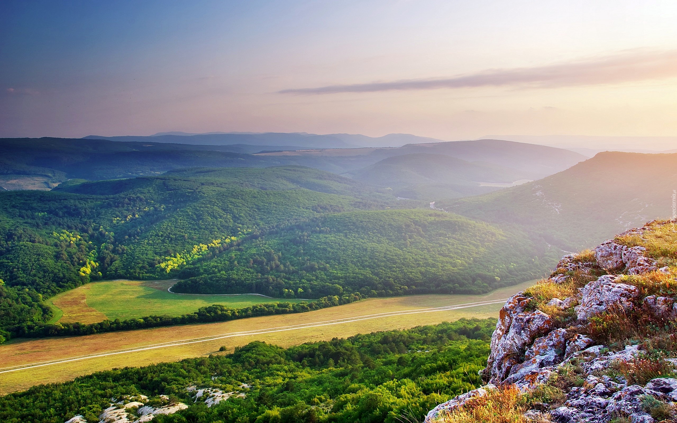 Edytor tapety: Góry, Droga, Skała, Poranek