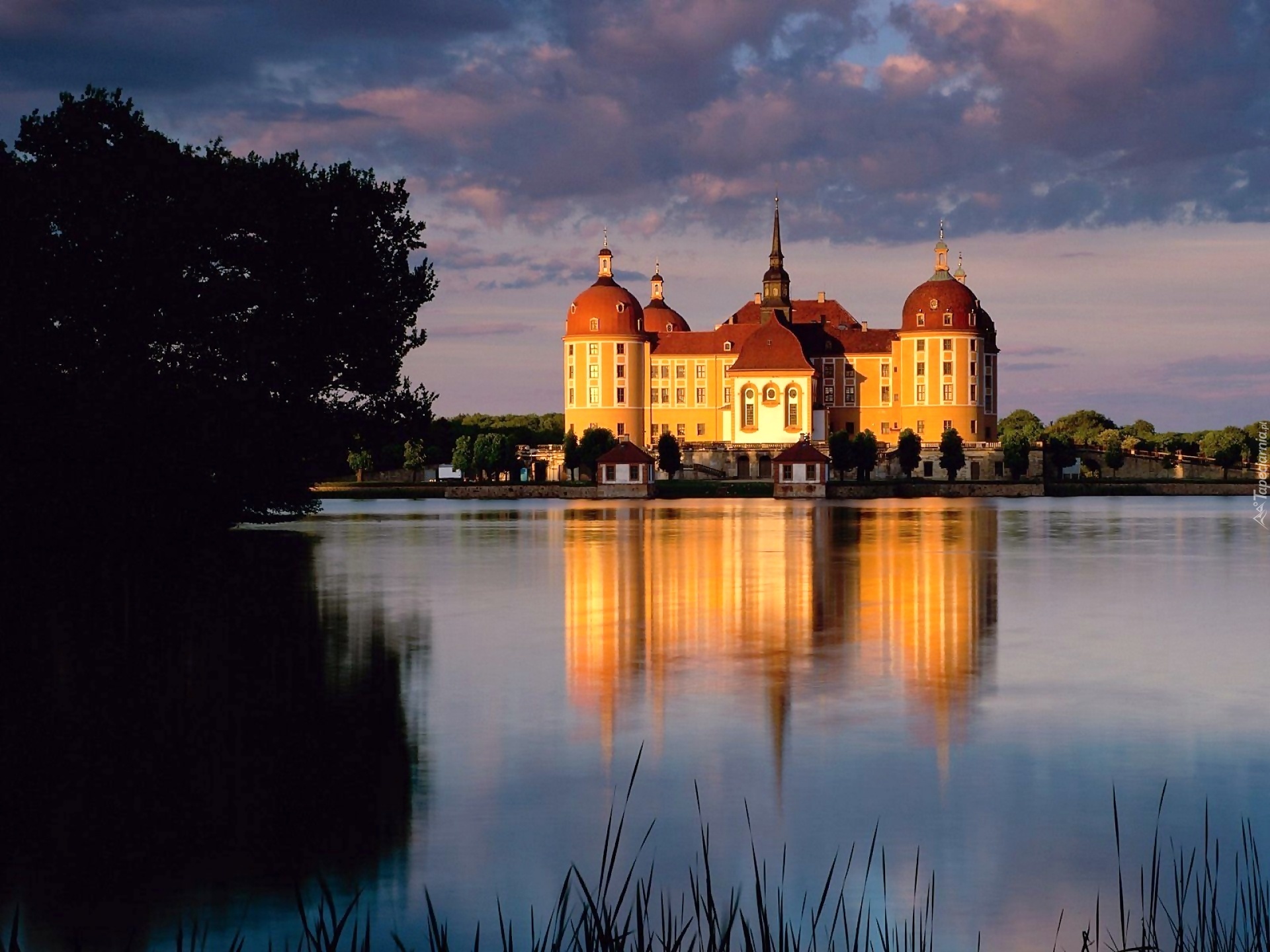 Edytor tapety: Zachód, Słońca, Jezioro, Pałac, Na Wodzie, Moritzburg