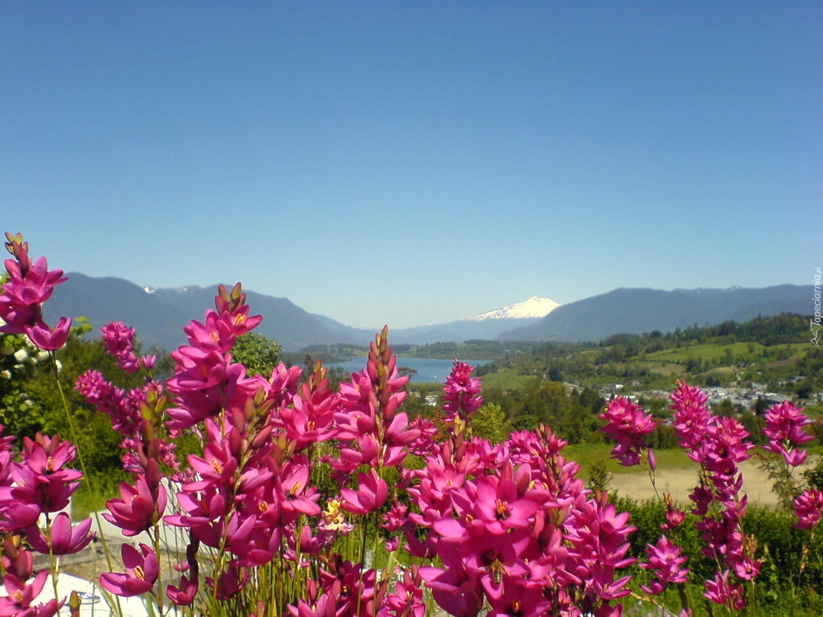 Edytor tapety: Kwiatki, Jeziorko, Góry