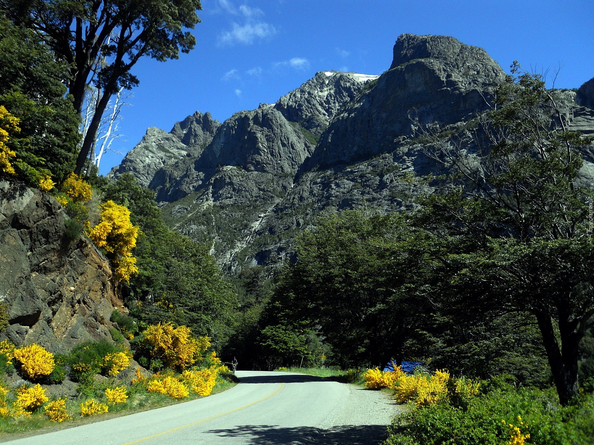Edytor tapety: Droga, Góry, Rowerzysta
