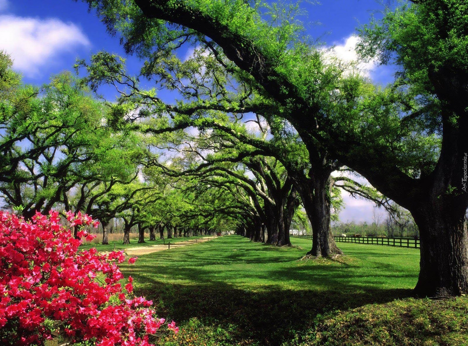 Edytor tapety: Park, Drzewa, Kwiatki
