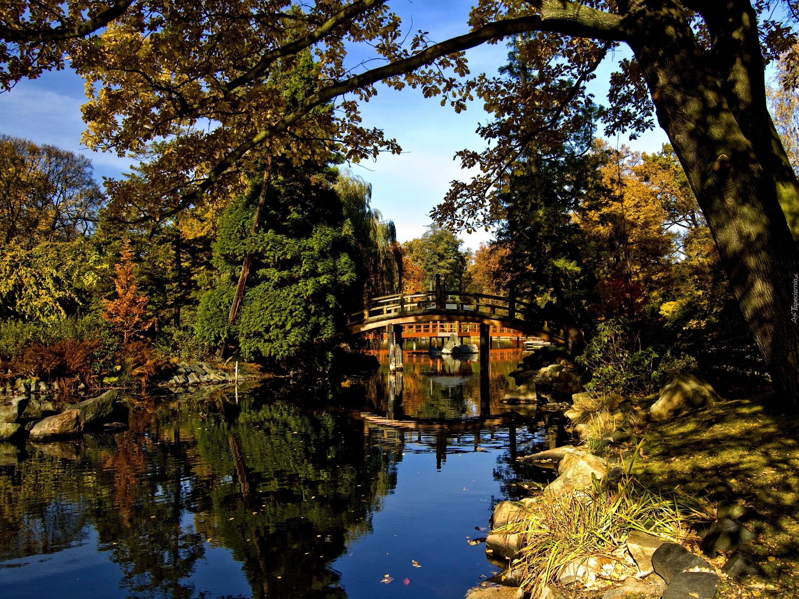 Edytor tapety: Mostek, Staw, Ogród, Japoński