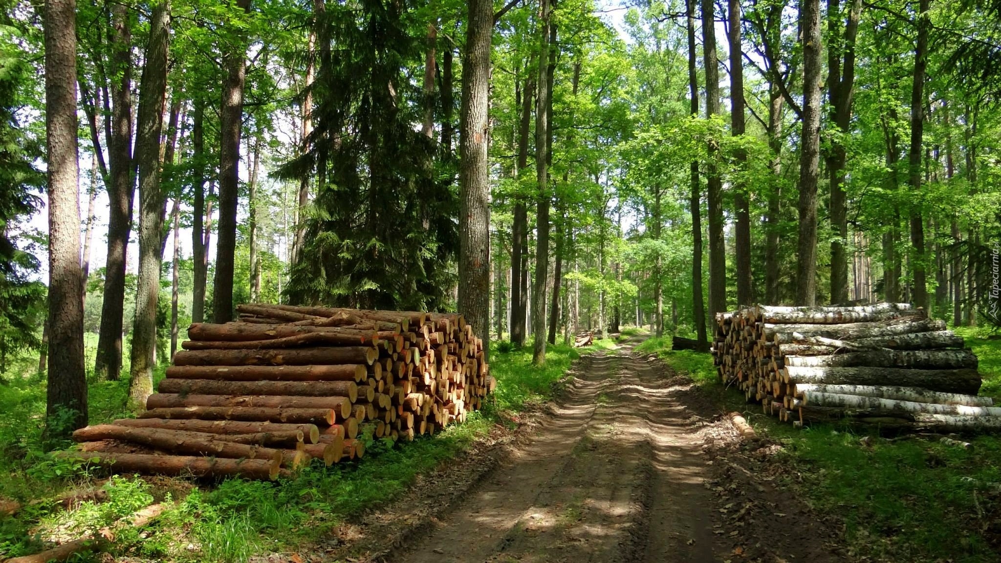 Edytor tapety: Las, Drzewa, Droga, Pniaki