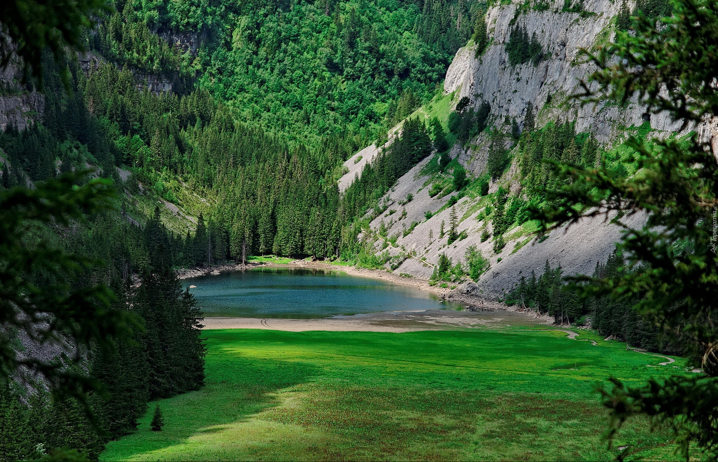 Edytor tapety: Góry, Lasy, Jezioro, Polana