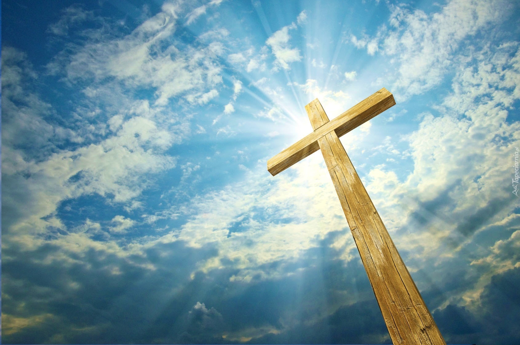 Edytor tapety: Krzyż, Niebo, Chmury, Promienie, Słońca