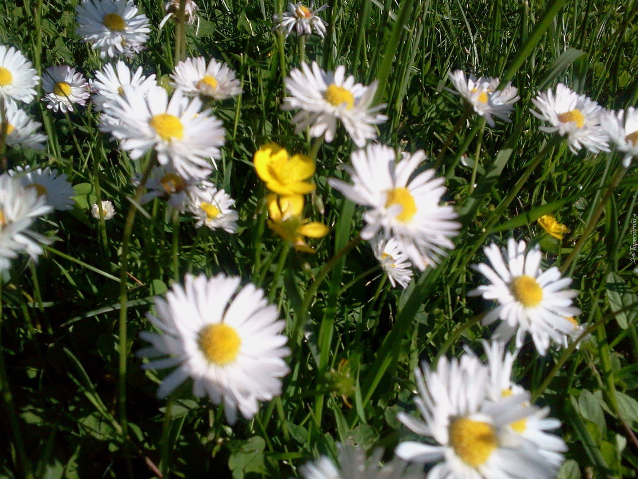 Edytor tapety: Kwitnące, Stokrotki, Łąka