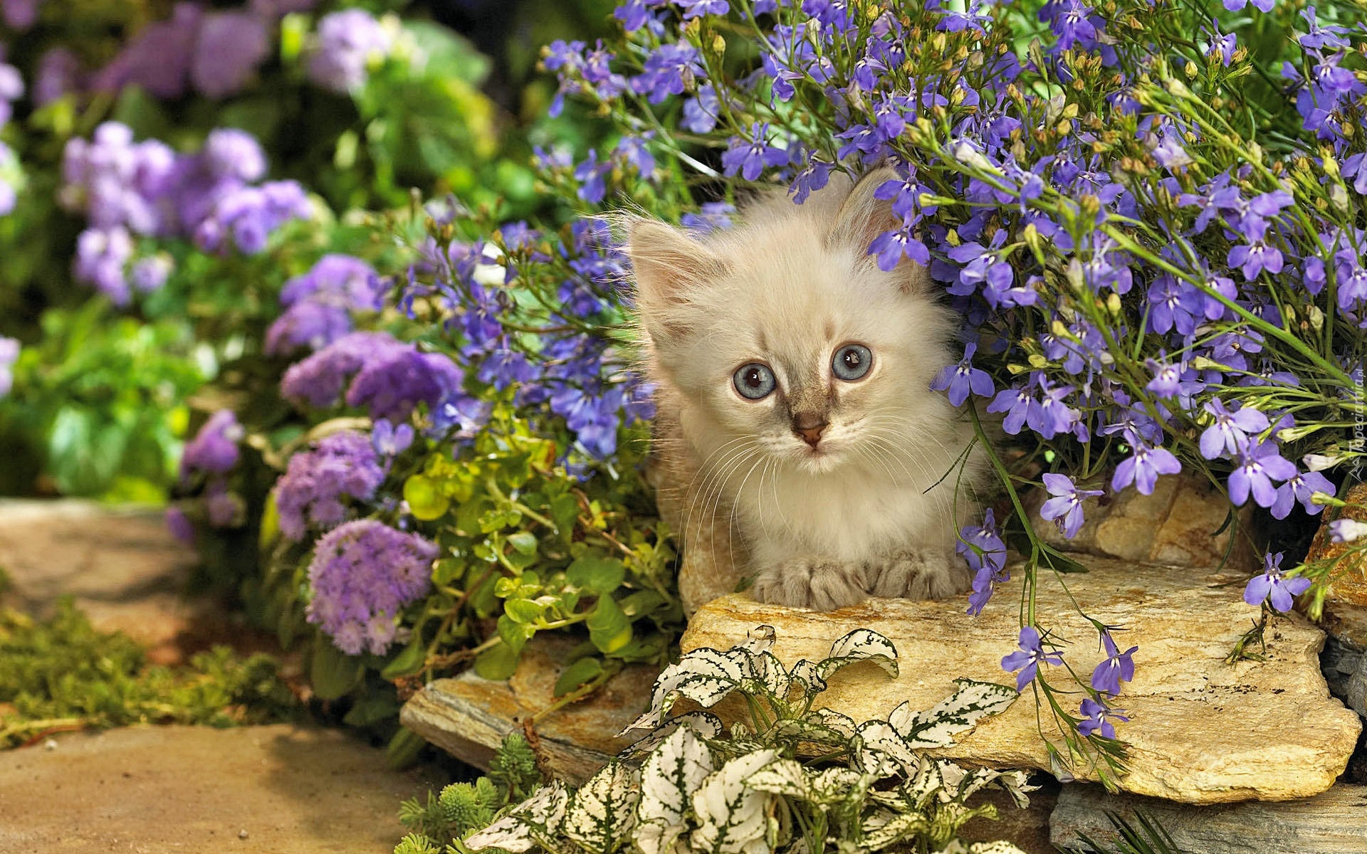 Edytor tapety: Mały, Kotek, Kwiatki