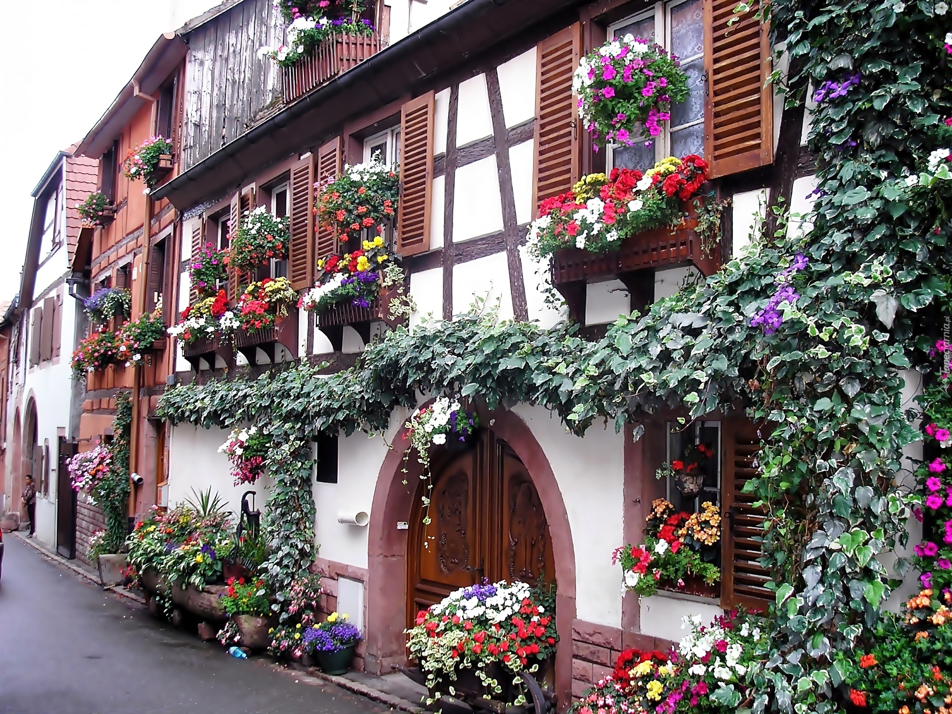 Edytor tapety: Uliczka, Ukwiecone, Domki