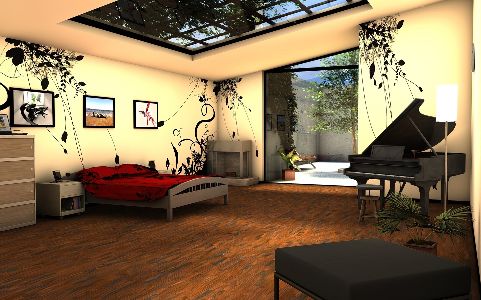 Edytor tapety: Dom, Sypialnia, Fortepian, Taras
