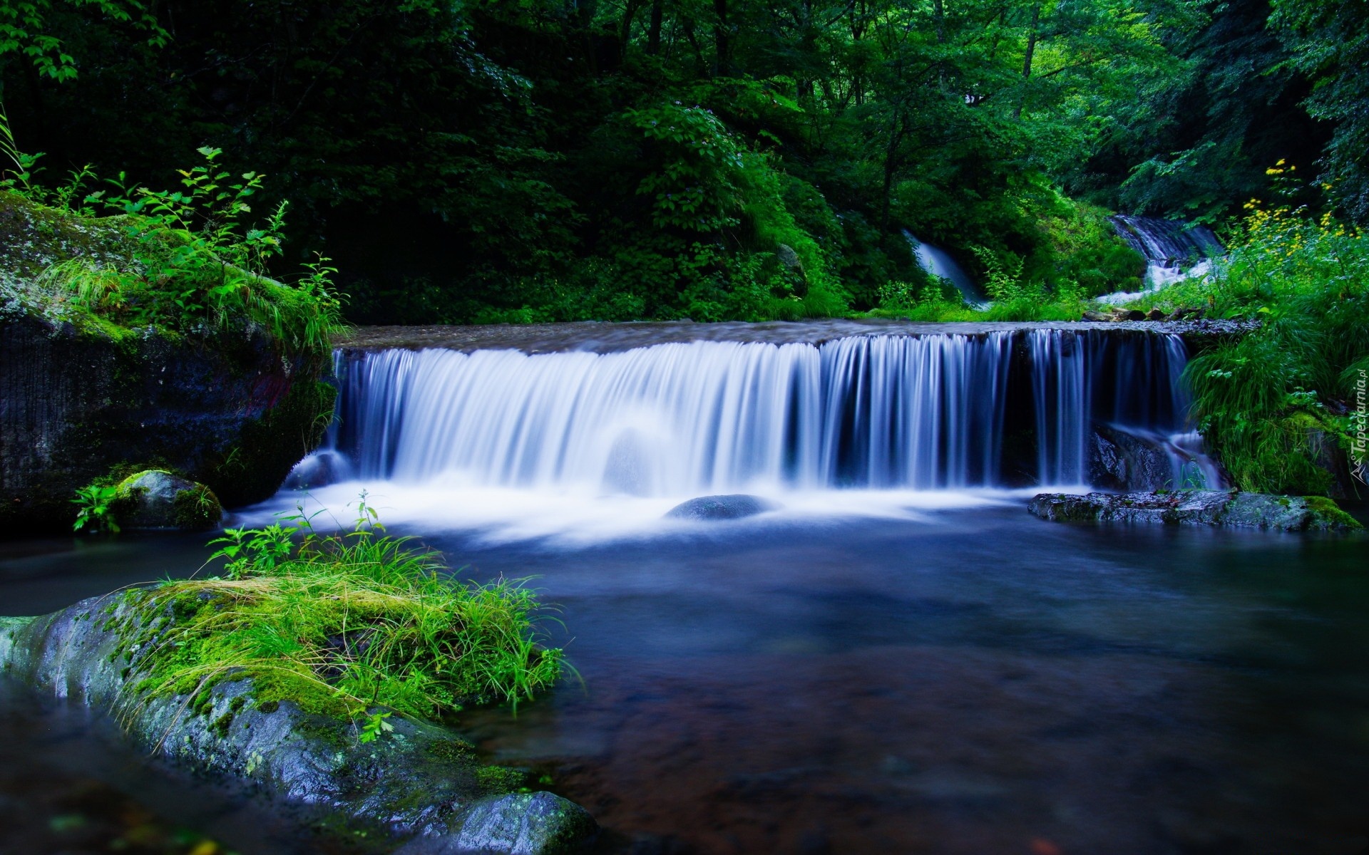 Edytor tapety: Wodospad, Las, Krzewy