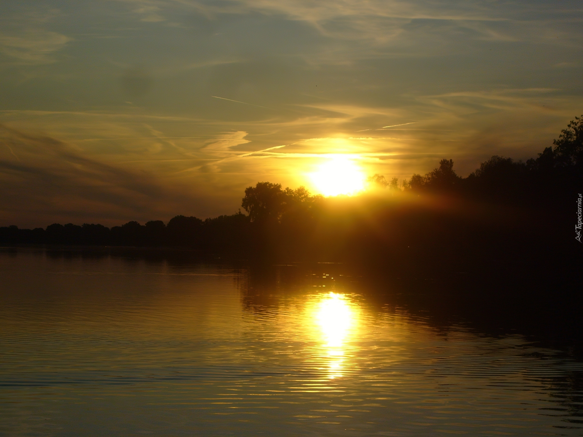 Edytor tapety: Zachód, Słońca, Jezioro, Odbicie