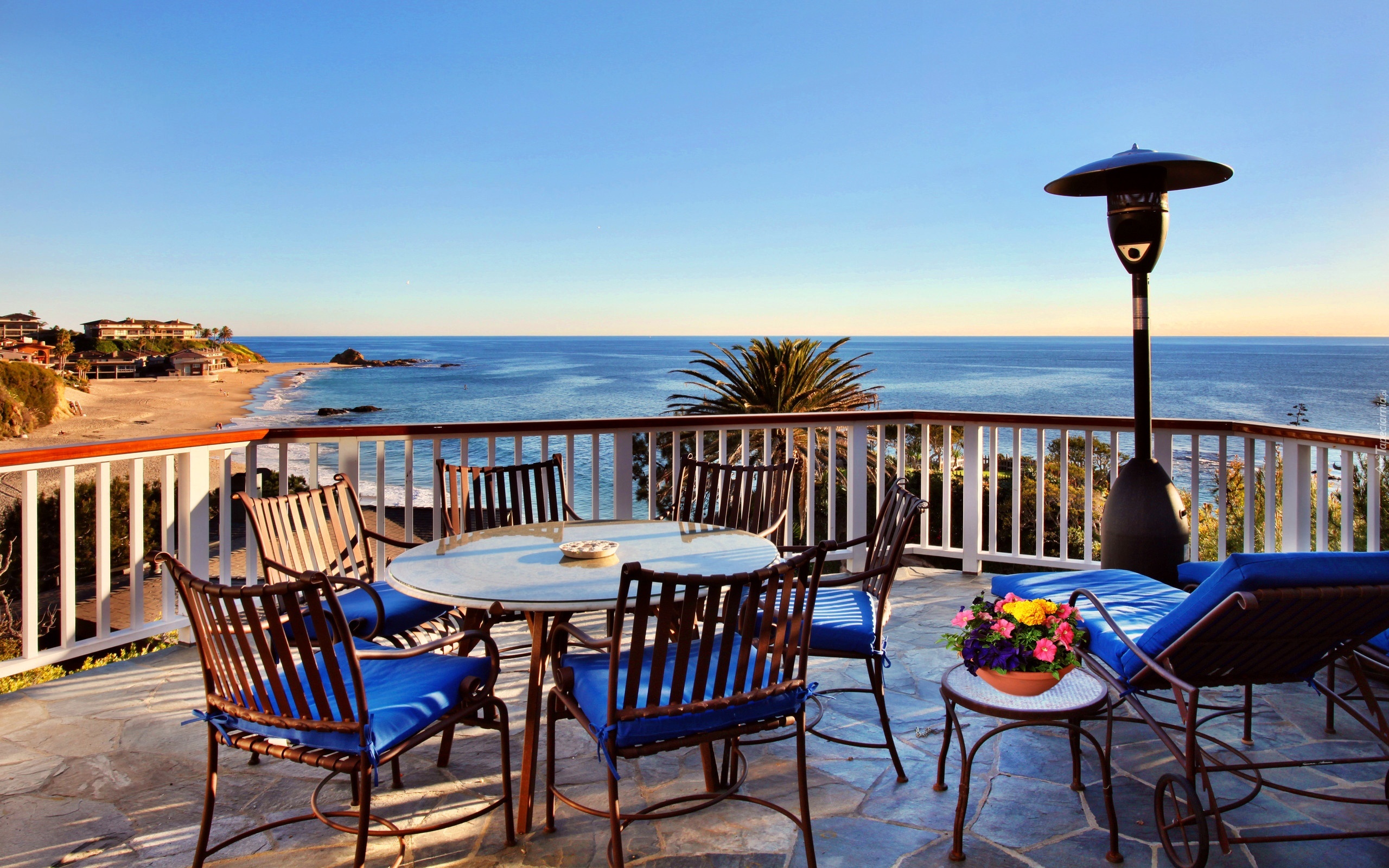 Edytor tapety: Dom, Taras, Morze, Plaża