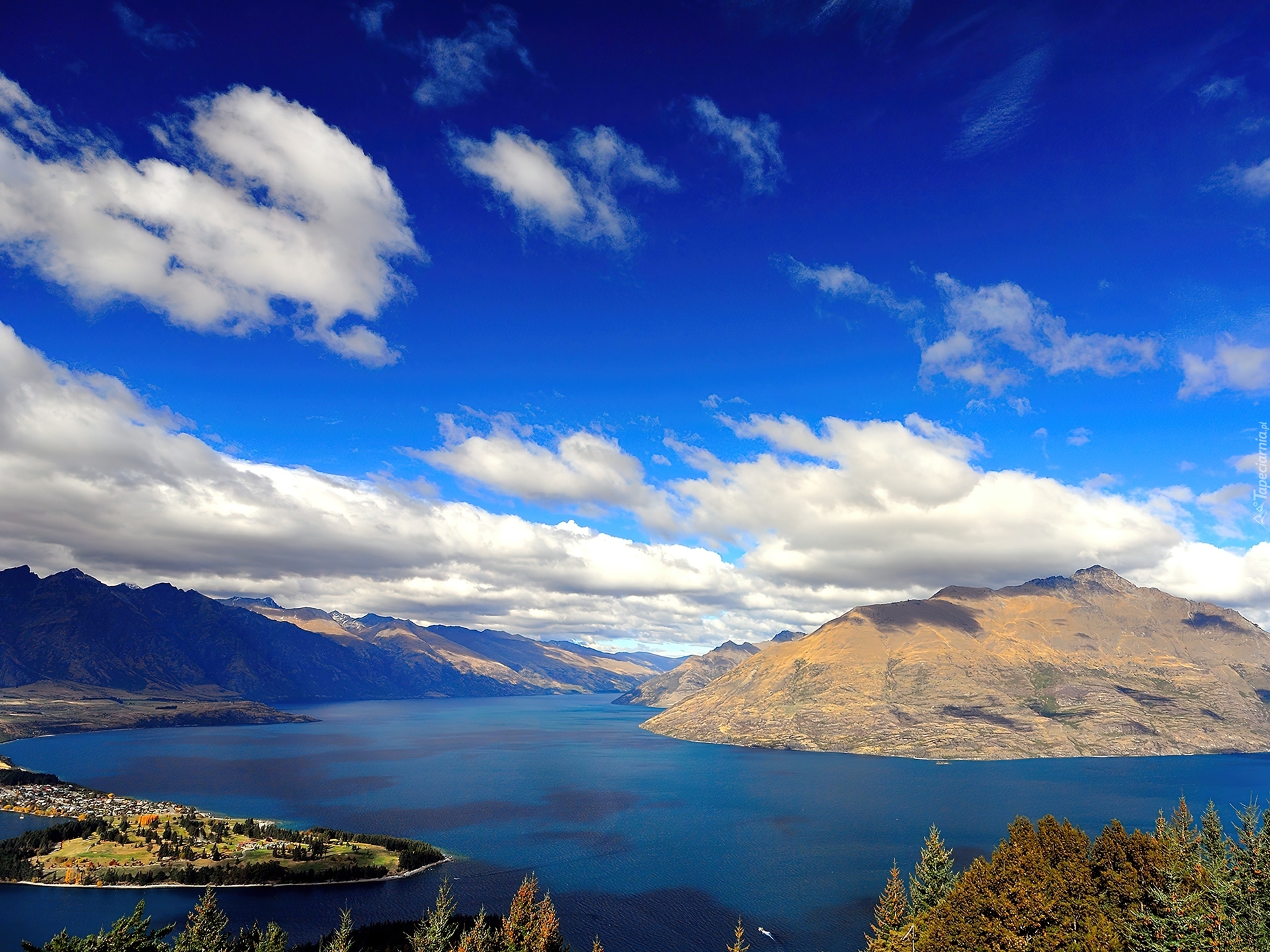 Edytor tapety: Niebo, Chmury, Góry, Jezioro