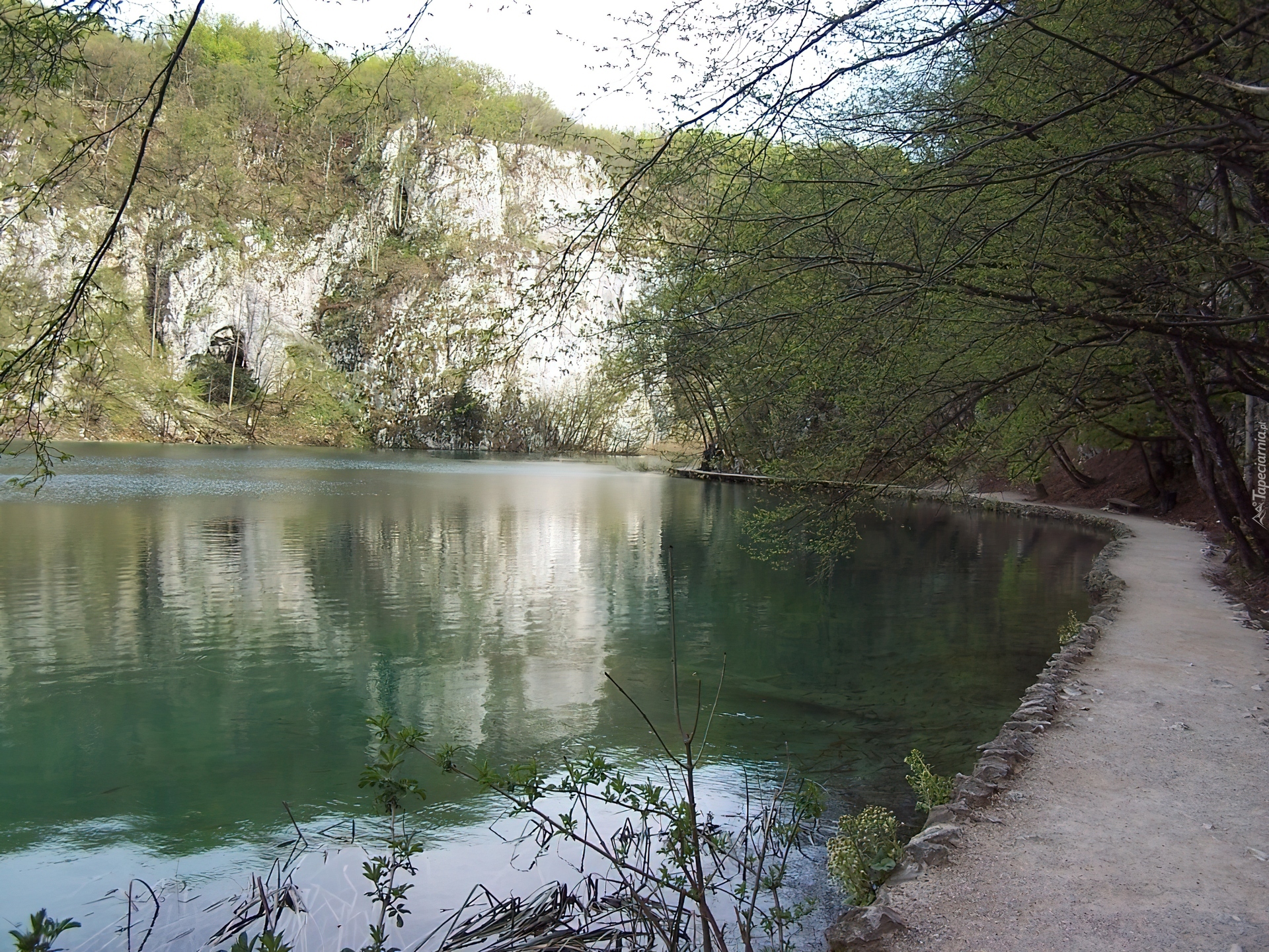 Edytor tapety: Góry,jezioro, chodnik ,brzeg