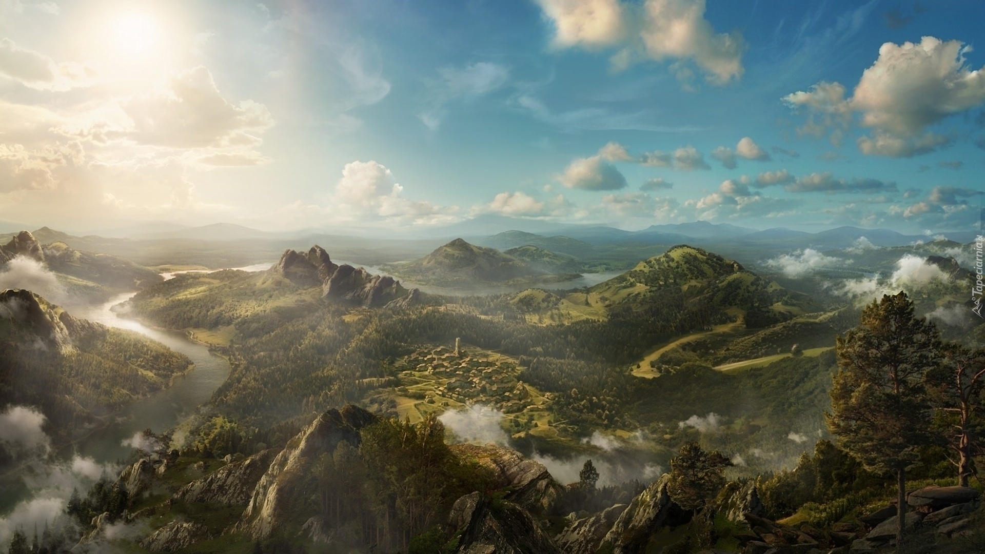 Edytor tapety: Góry, Rzeka, Lasy, Mgła, Chmury
