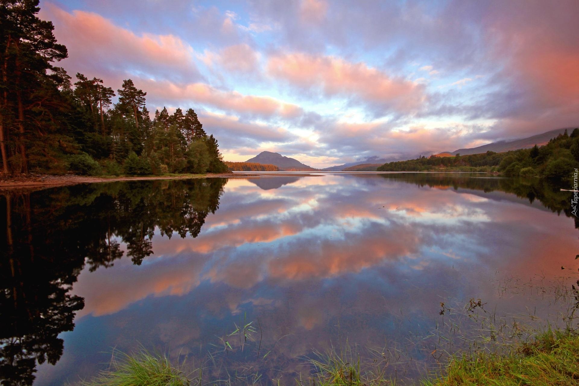 Edytor tapety: Jezioro, Lasy, Zachód Słońca