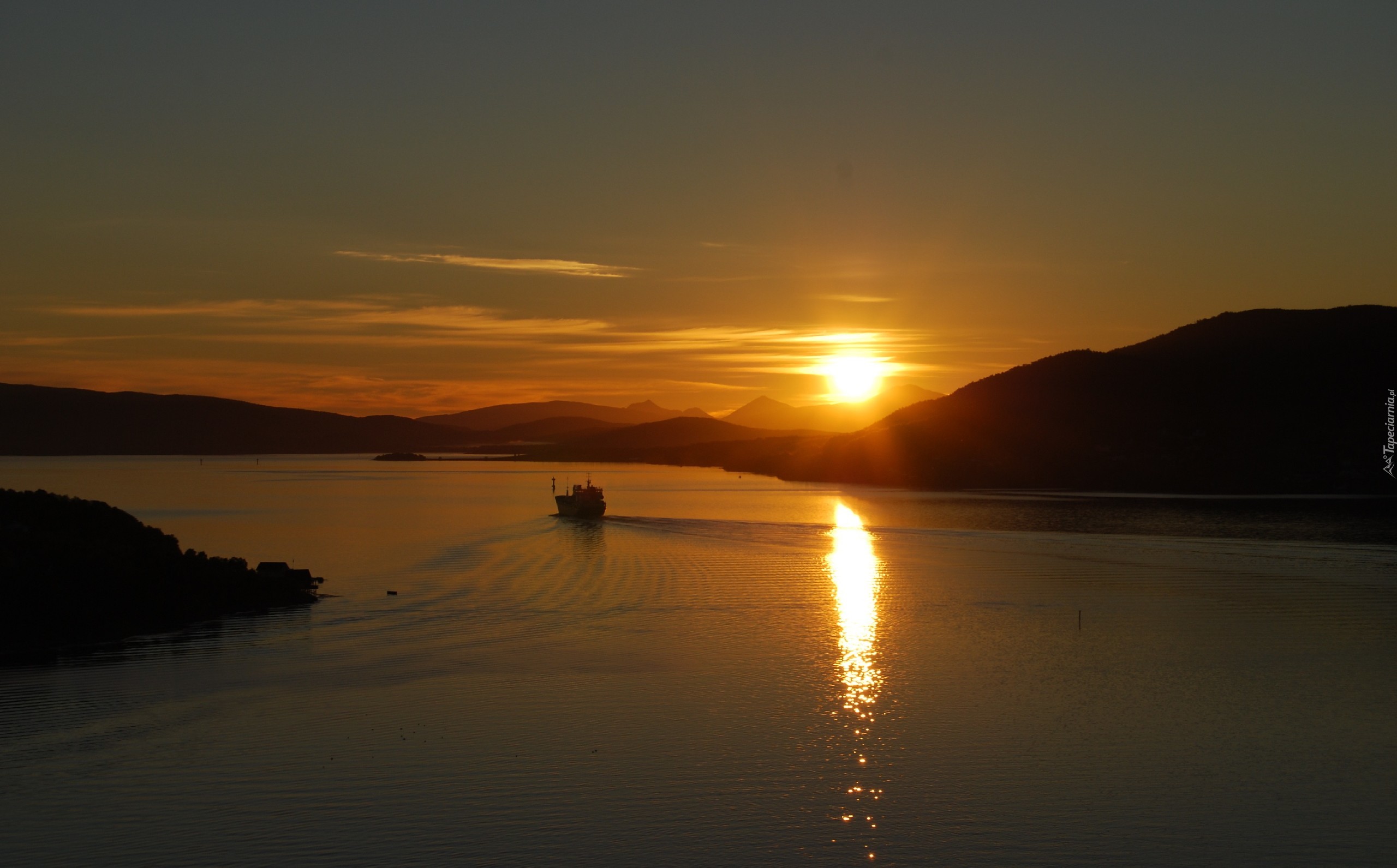 Edytor tapety: Jezioro, Góry, Zachód Słońca