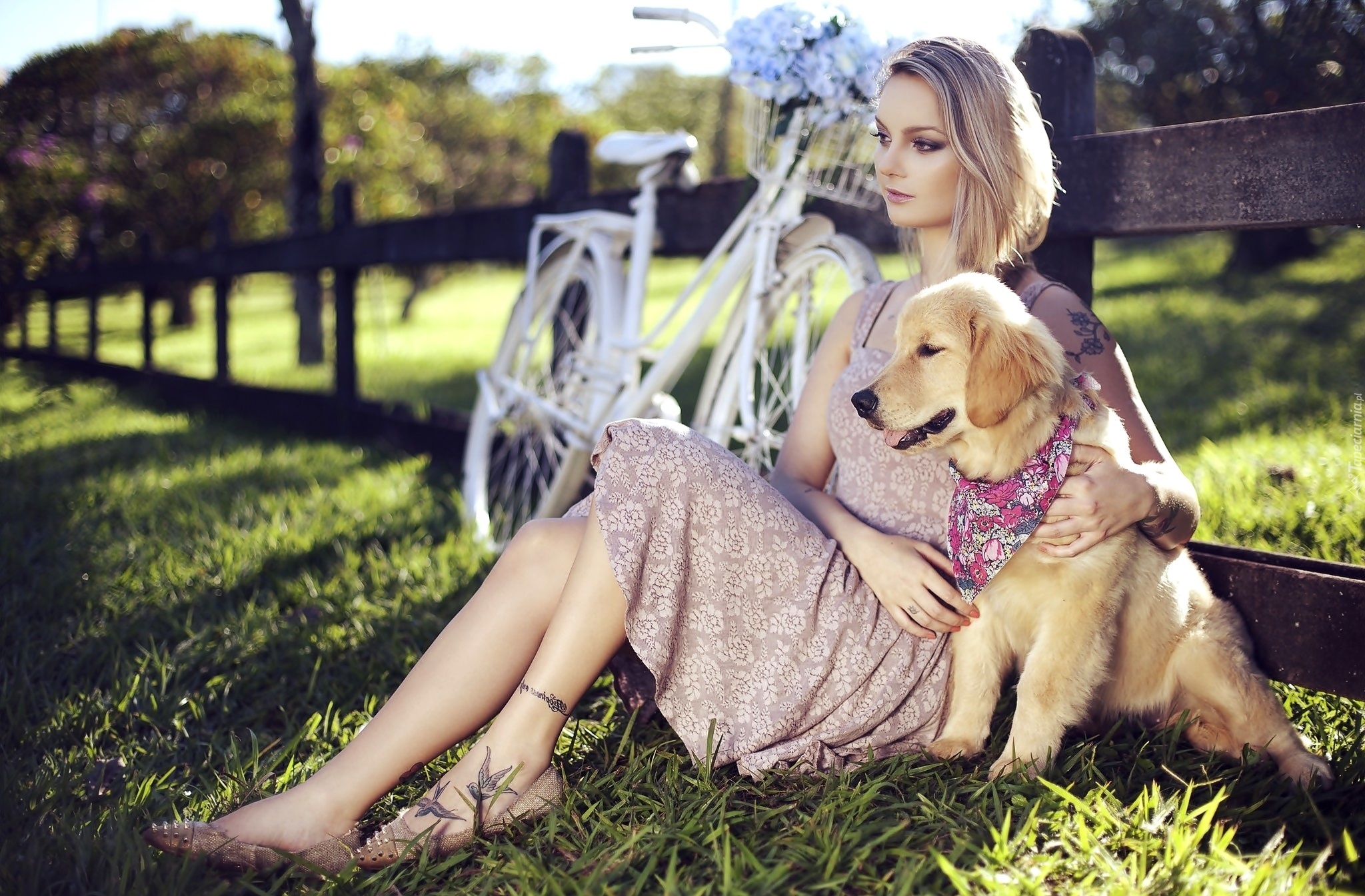 Edytor tapety: Dziewczyna, Tatuaże, Pies, Rower, Płot