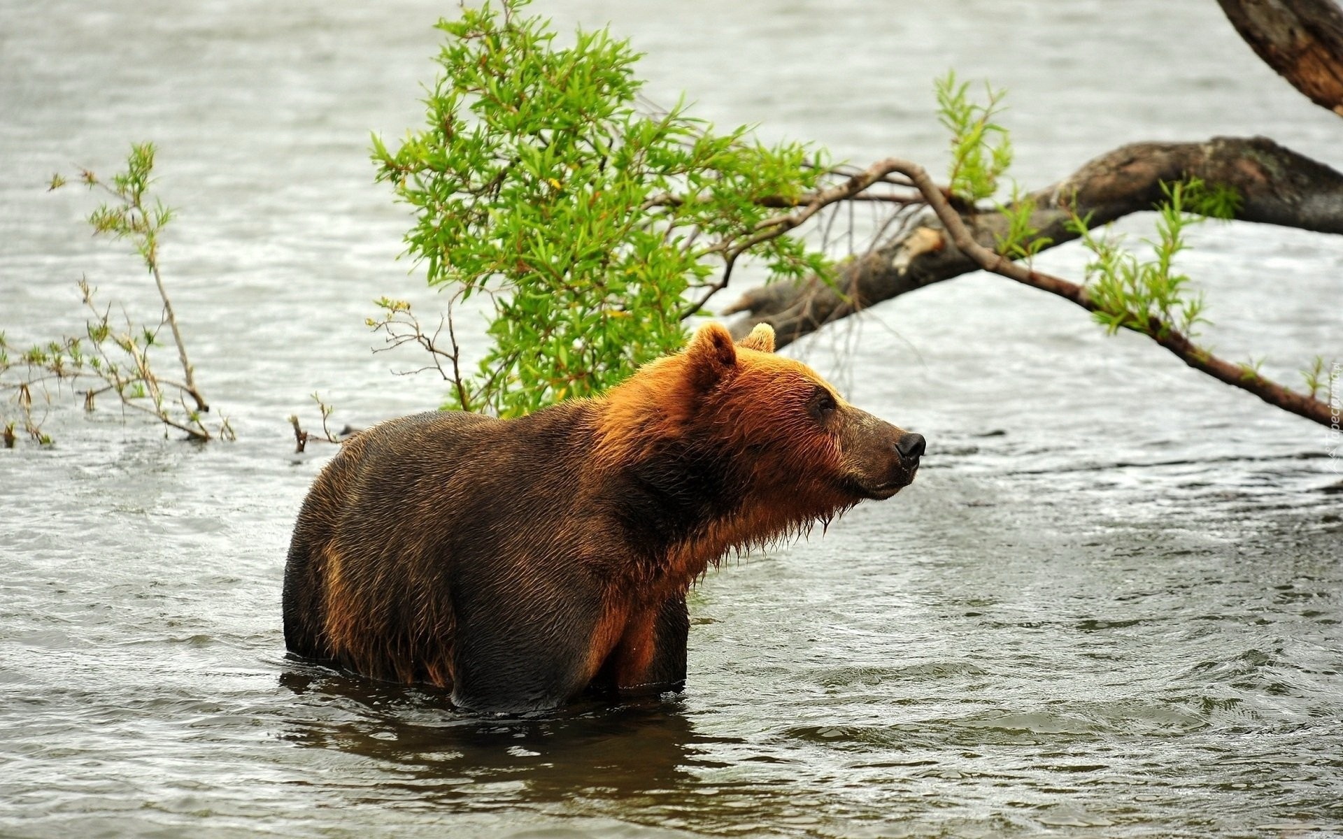 Edytor tapety: Niedzwiedz, Brunatny, Rzeka, Drzewo
