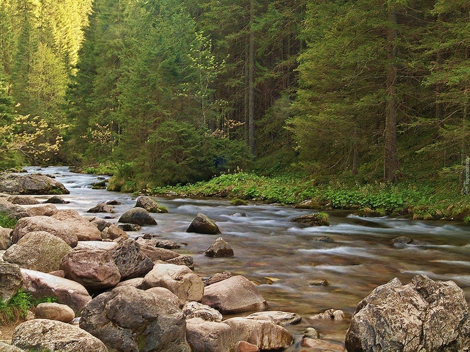 Edytor tapety: Potok, Skały, Las