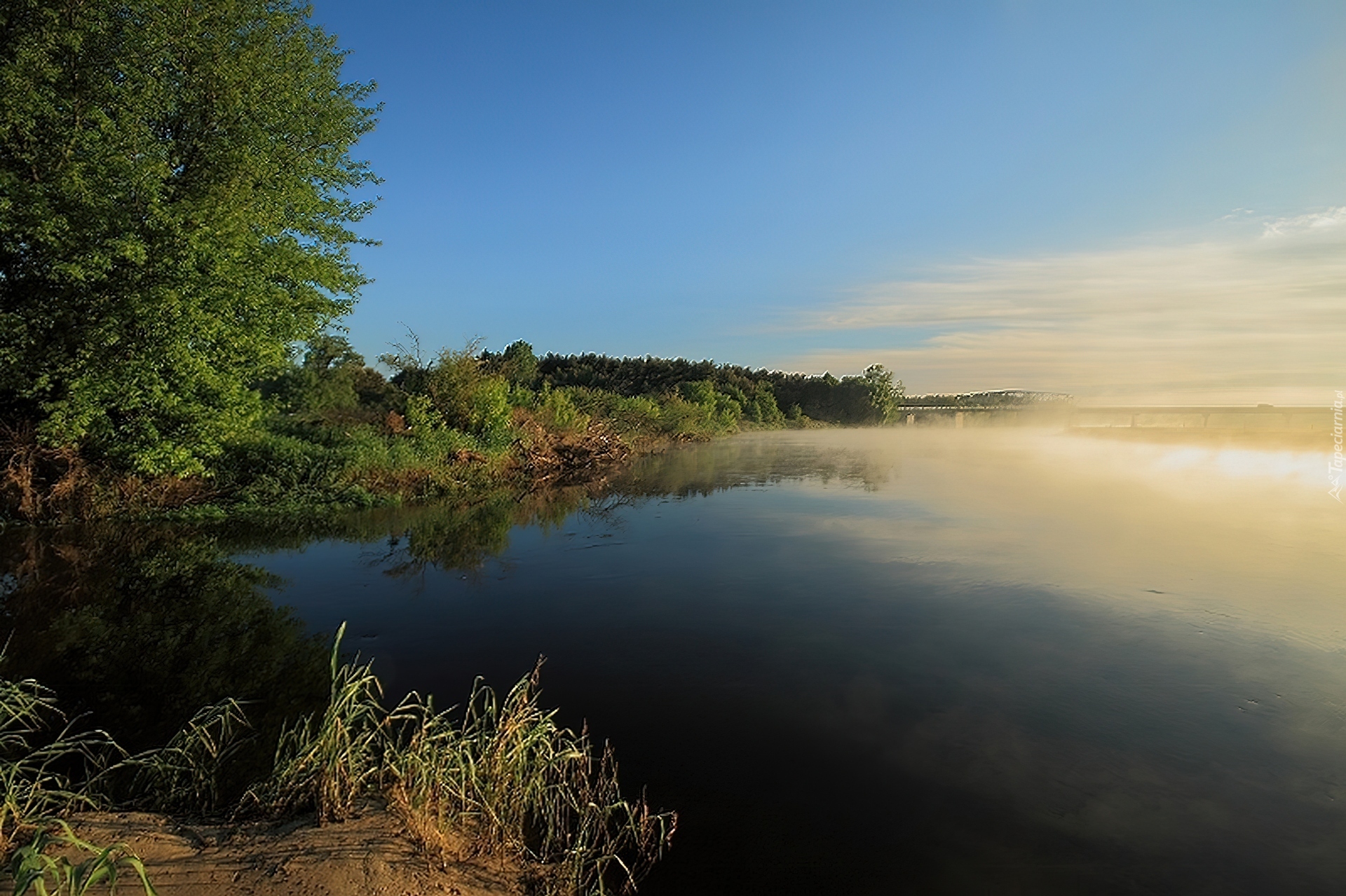 Edytor tapety: Jezioro, Mgła, Las
