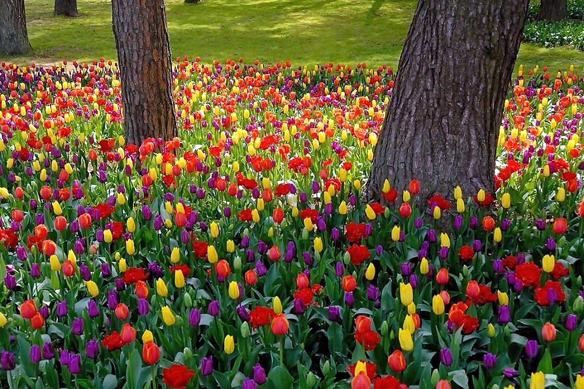 Edytor tapety: Park, Kolorowe, Tulipany