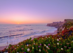 Edytor tapety: Morze, Wybrzeże, Kwiaty, Zachód, Słońca