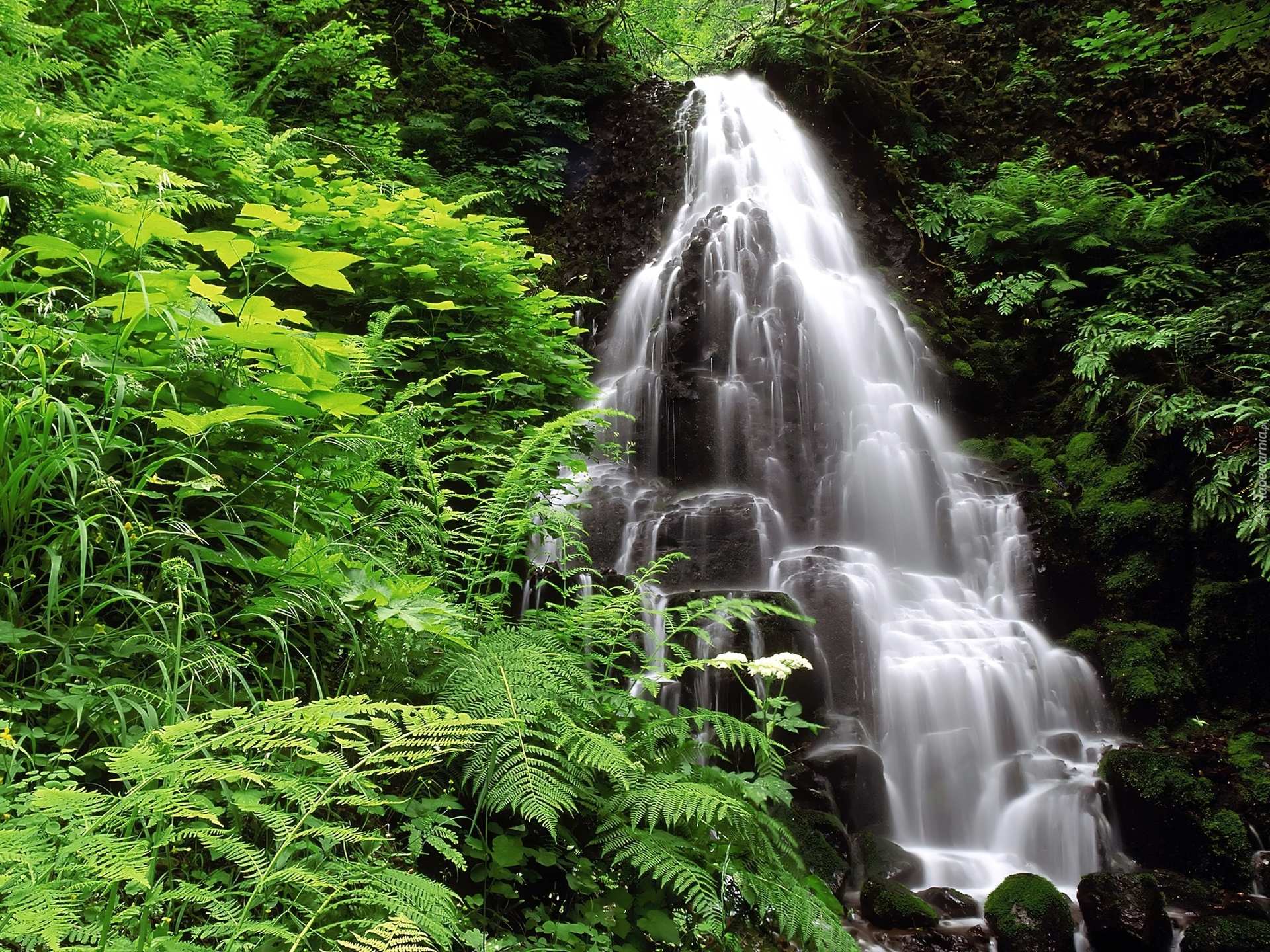 Edytor tapety: Wodospad, Kamienie, Paprocie