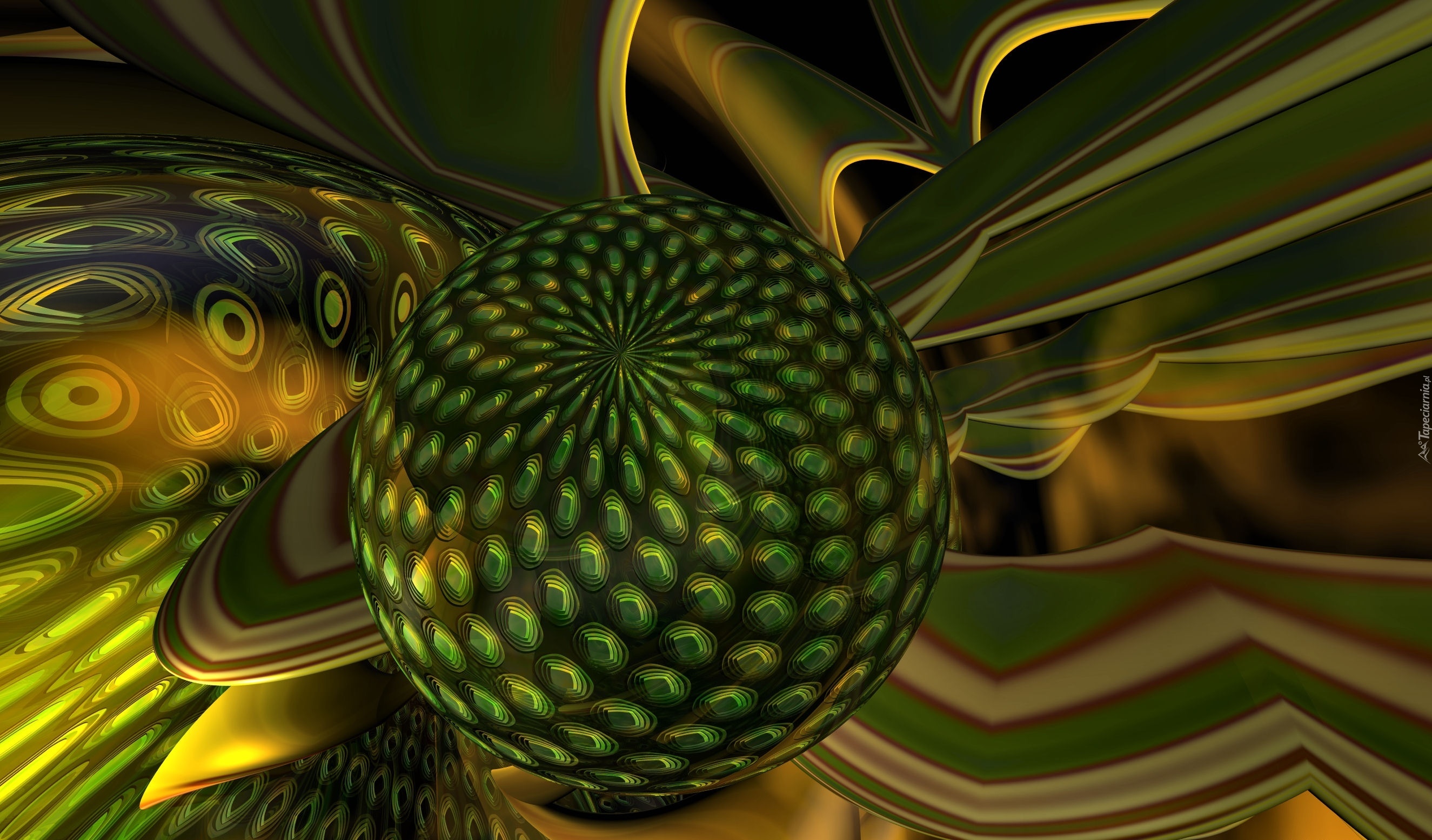 Edytor tapety: Zielona, Kula, Wstęgi, 3D