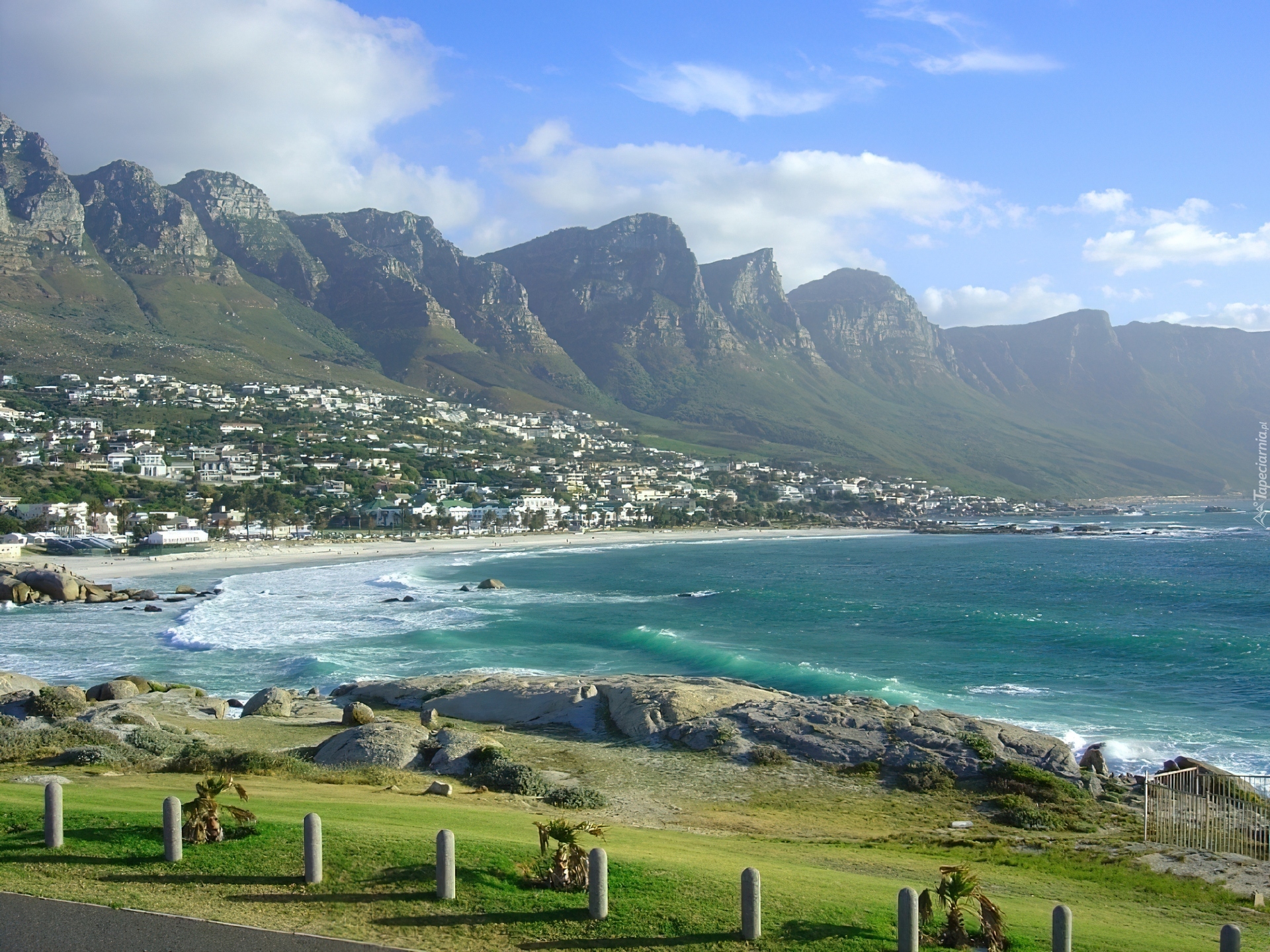 Edytor tapety: Góry, Morze, Fale, Chatki