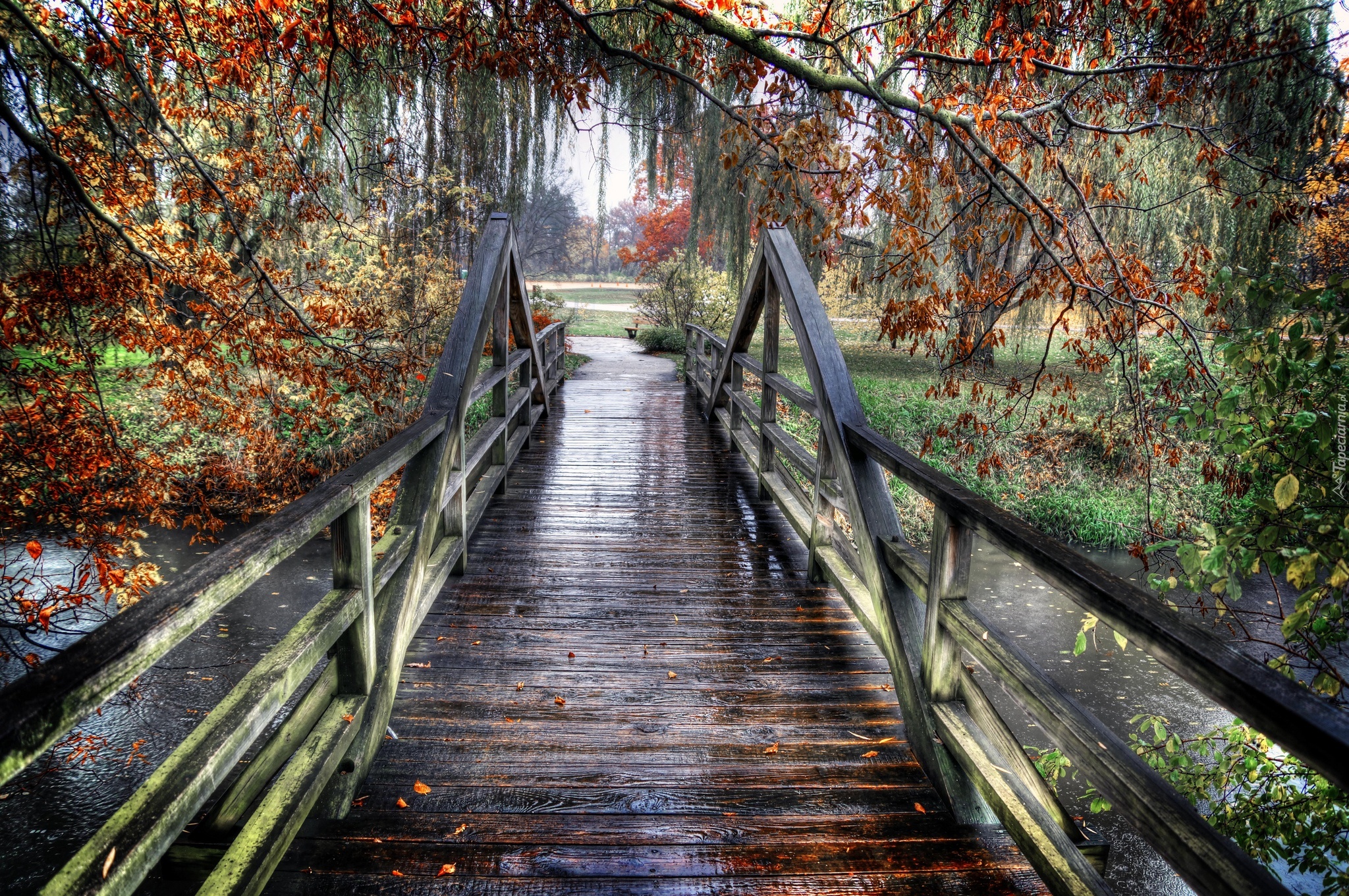 Edytor tapety: Rzeka, Most, Drzewa, Jesień