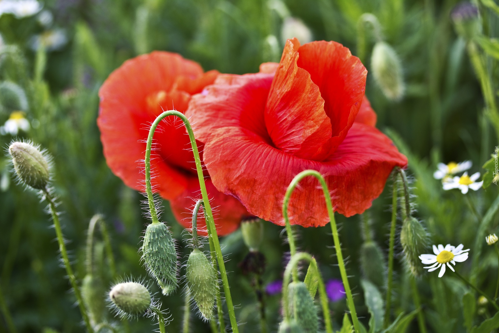 Edytor tapety: Czerwone, Maki, Rumianek
