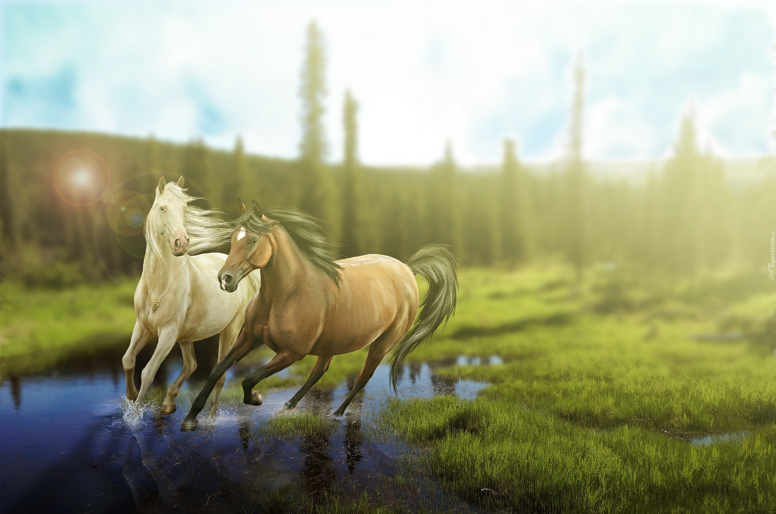 Edytor tapety: Konie, Woda, Art