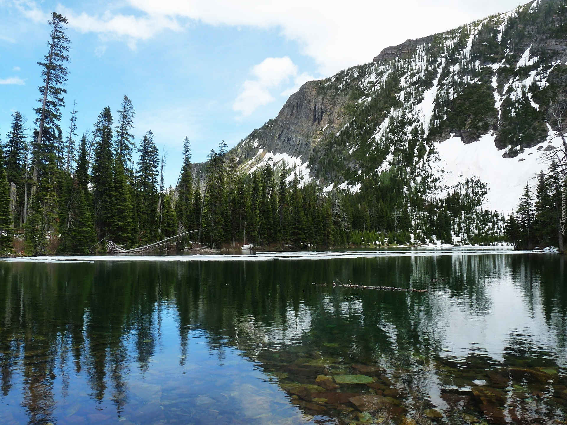 Edytor tapety: Zima, Góry, Lasy, Rzeka